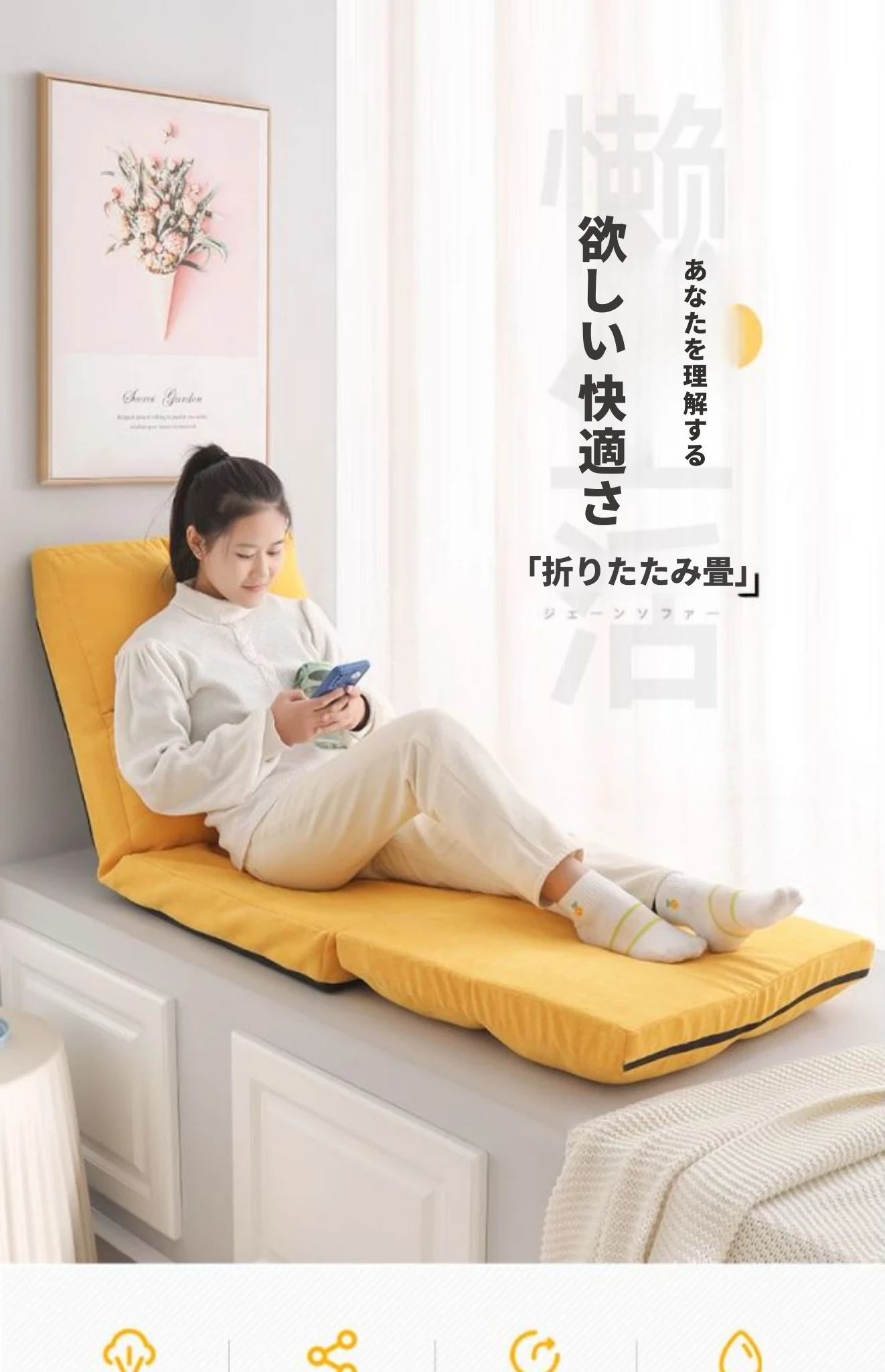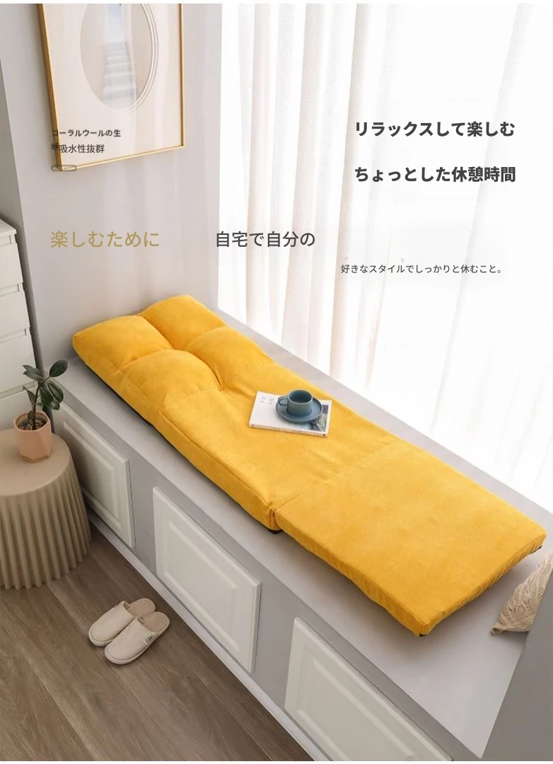 かわいい一人用ソファ!リラックスできるフロアクッション兼用の窓辺ベッド。折りたたみ式で、寝室やリビングにぴったり。お家でくつろぎのひとときを楽しもう!
