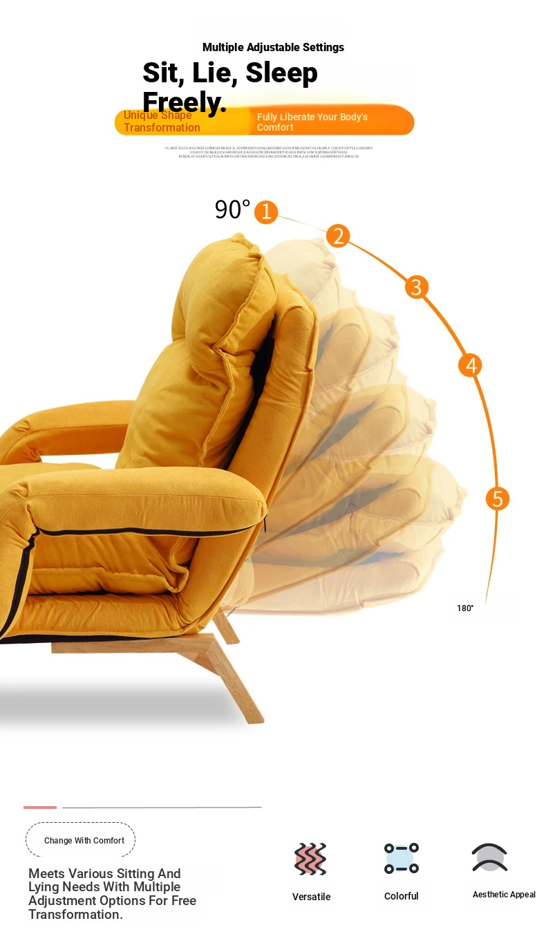 Cozy Lazy Sofa Chair - Versatile Folding Lounger for Dorms and Bedrooms, Perfect for Relaxing, Sleeping, or Working at Your Computer - Comfortable Single Seat with Backrest