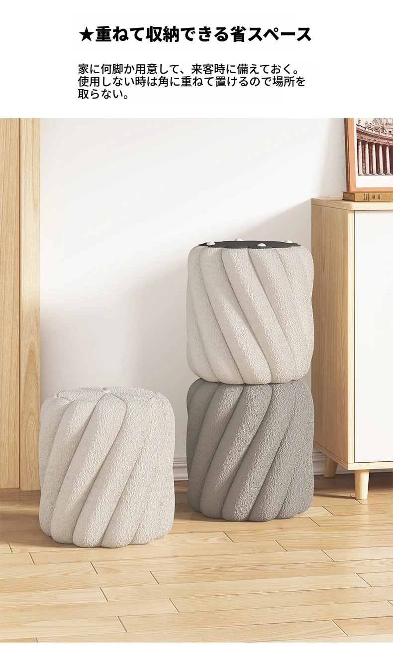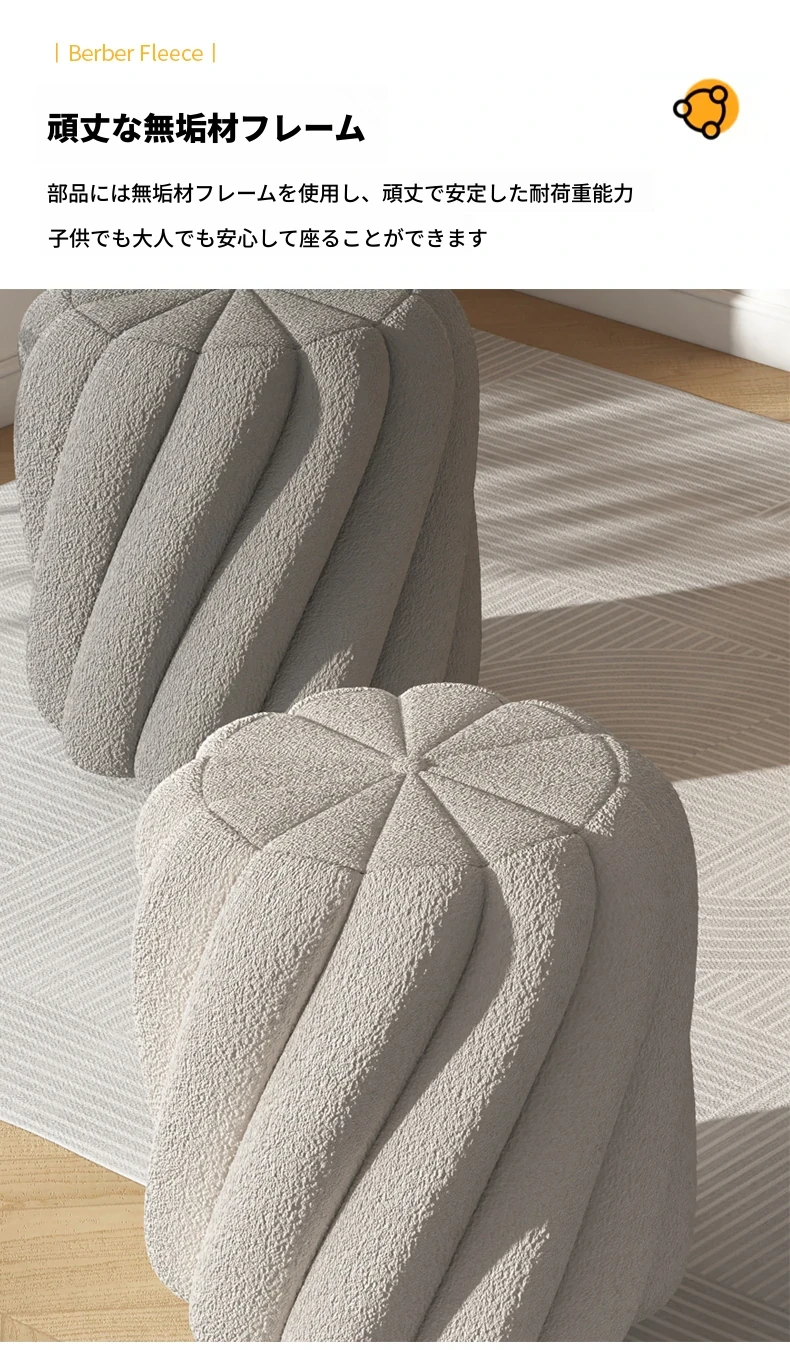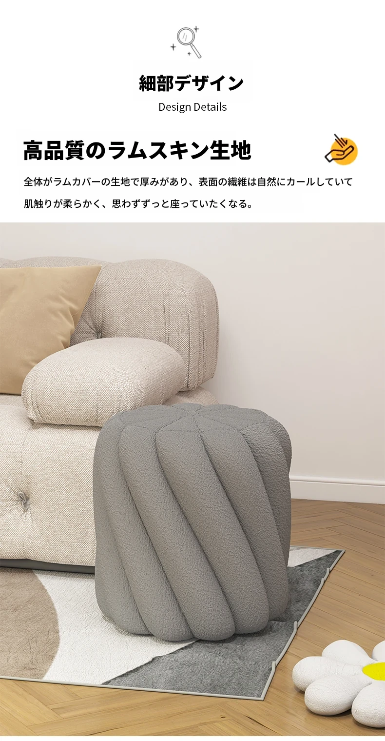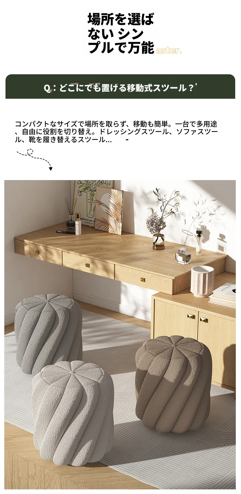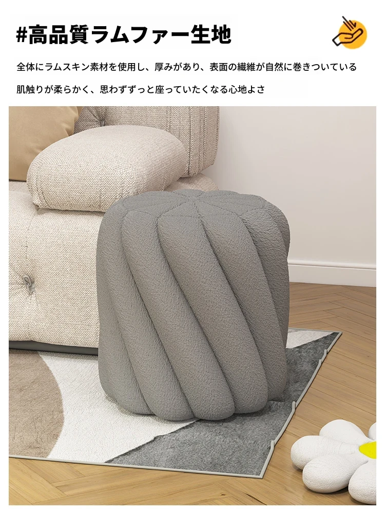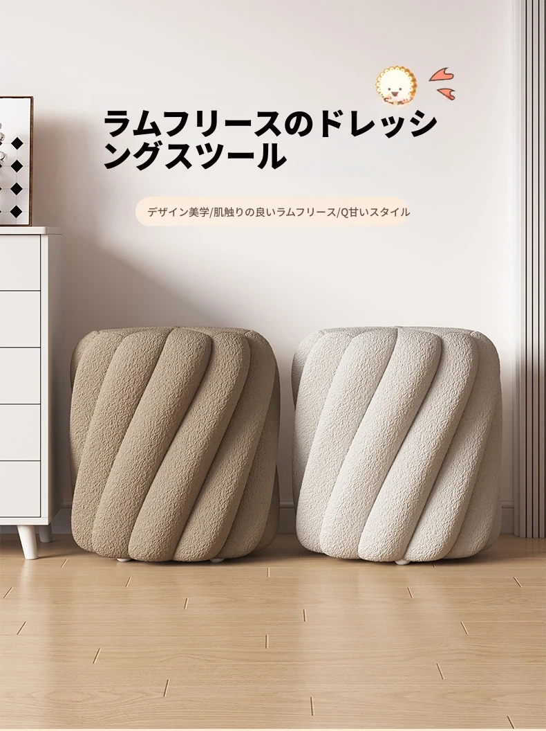 おしゃれな円形メイクアップスツール|女性のための寝室や主寝室にぴったり|ネイルや化粧に最適|ふわふわのラムファーで快適な座り心地|あなたのお部屋を華やかに彩る一品!