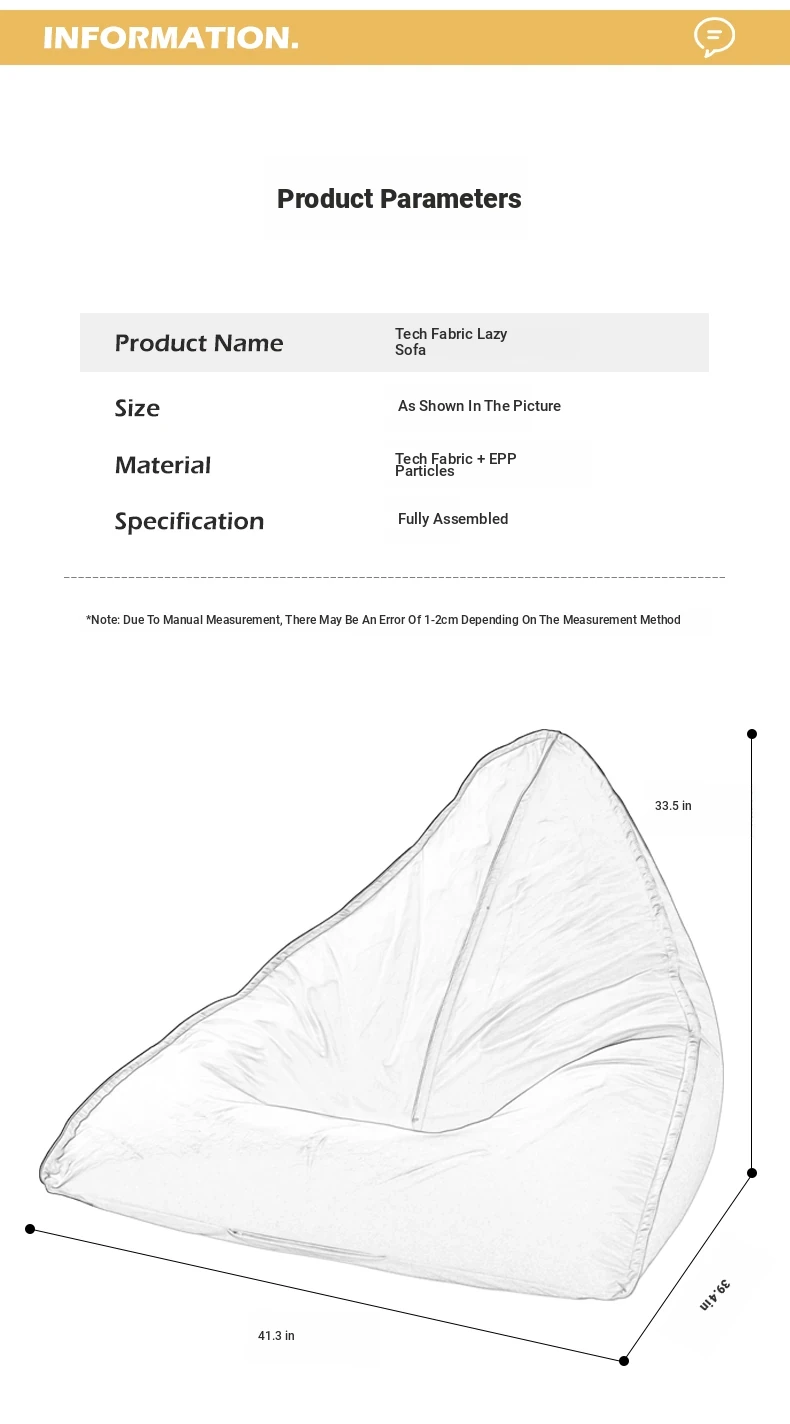 Cozy Tech Fabric Bean Bag Sofa - Versatile Lounger for Small Spaces, Perfect for Balcony Relaxation & Comfortable Sleeping - Ideal for Single Person Use