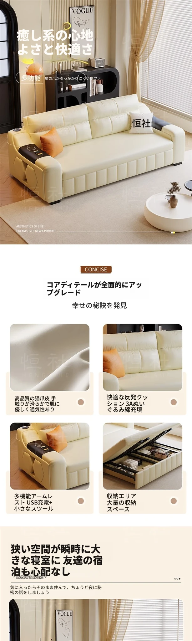 外径含扶手2.0メートルウレタンタイプ-猫爪皮+USB【収納付き】 四つの椅子付き