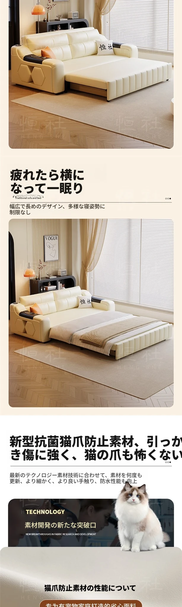 外径含扶手1.8メートルラテックスタイプ-猫爪皮+USB【収納付き】 四つの椅子付き