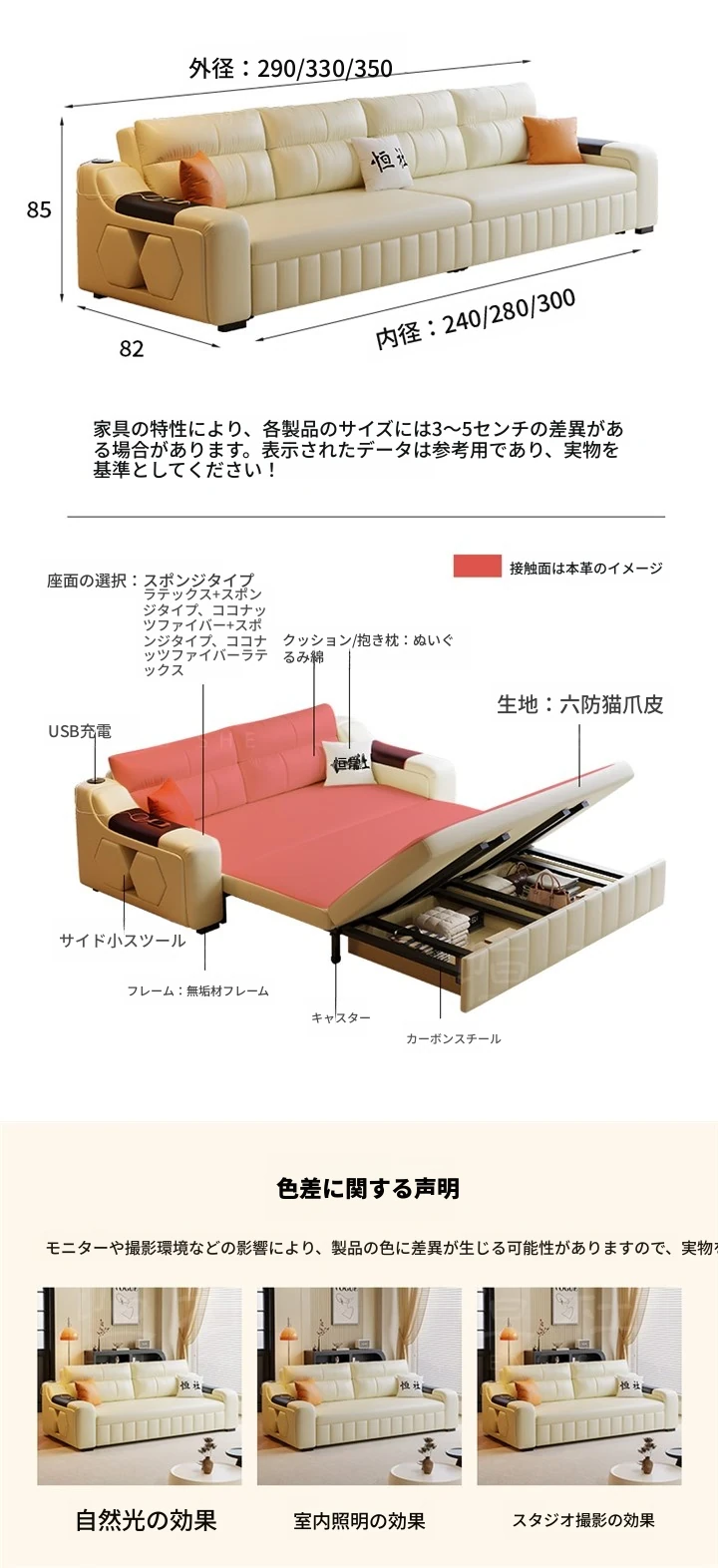 外径含扶手2.9メートルラテックスタイプ-猫爪皮+USB【収納付き】 四つの椅子付き