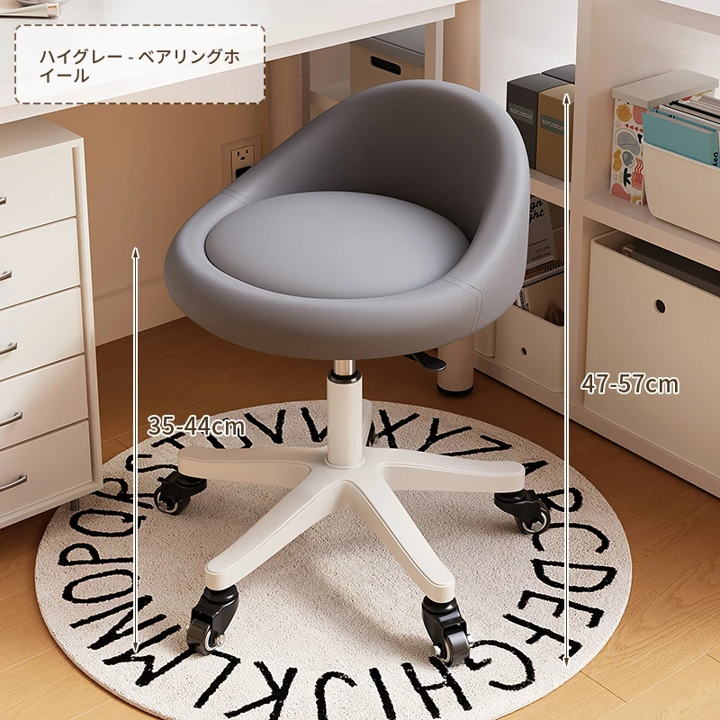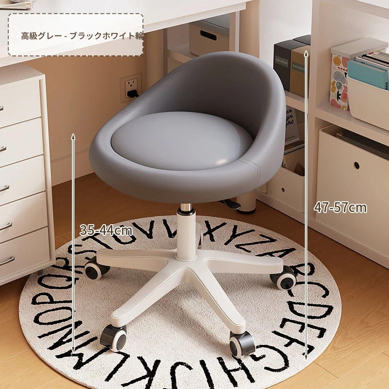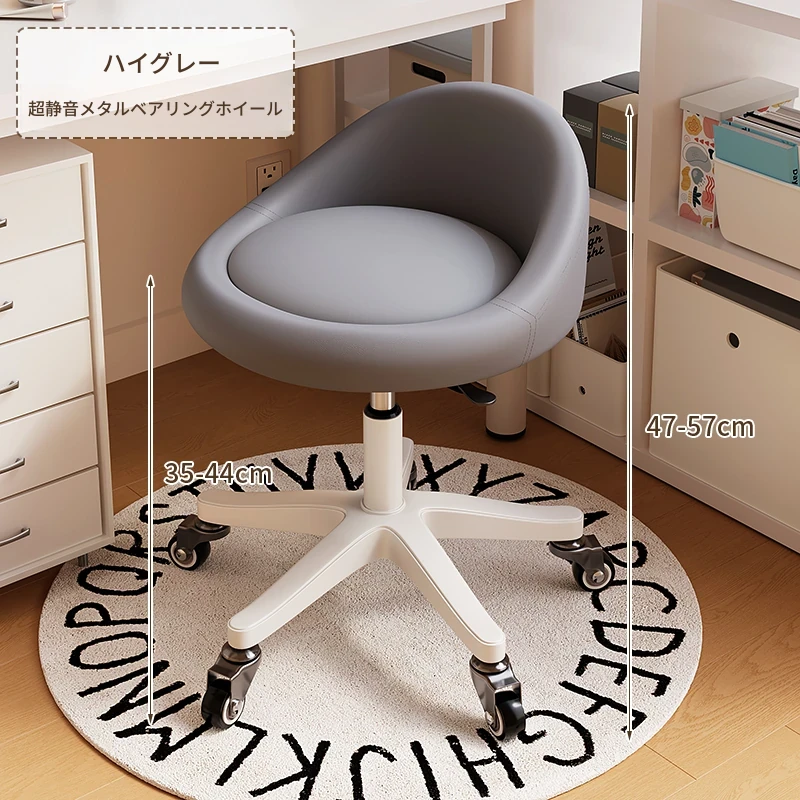 【座面メンテナンス不要】灰-360°回転-広い座面-金属ベアリングホイール