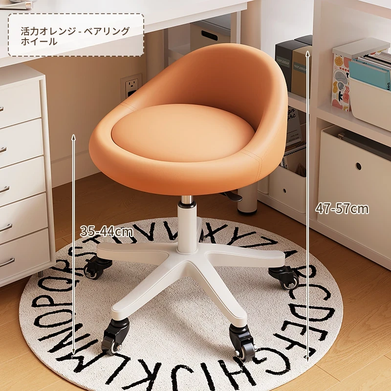 【座面メンテナンス不要】オレンジ-360°回転-広い座面-金属ベアリングホイール