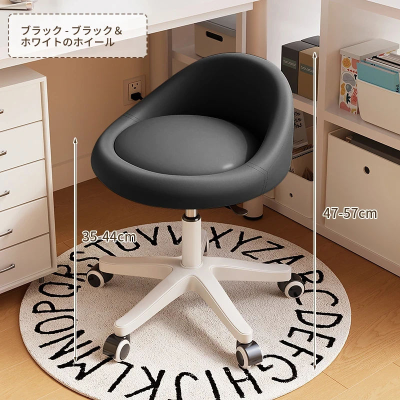 【座面メンテナンス不要】黒-360°回転-広い座面-耐荷重全白ホイール