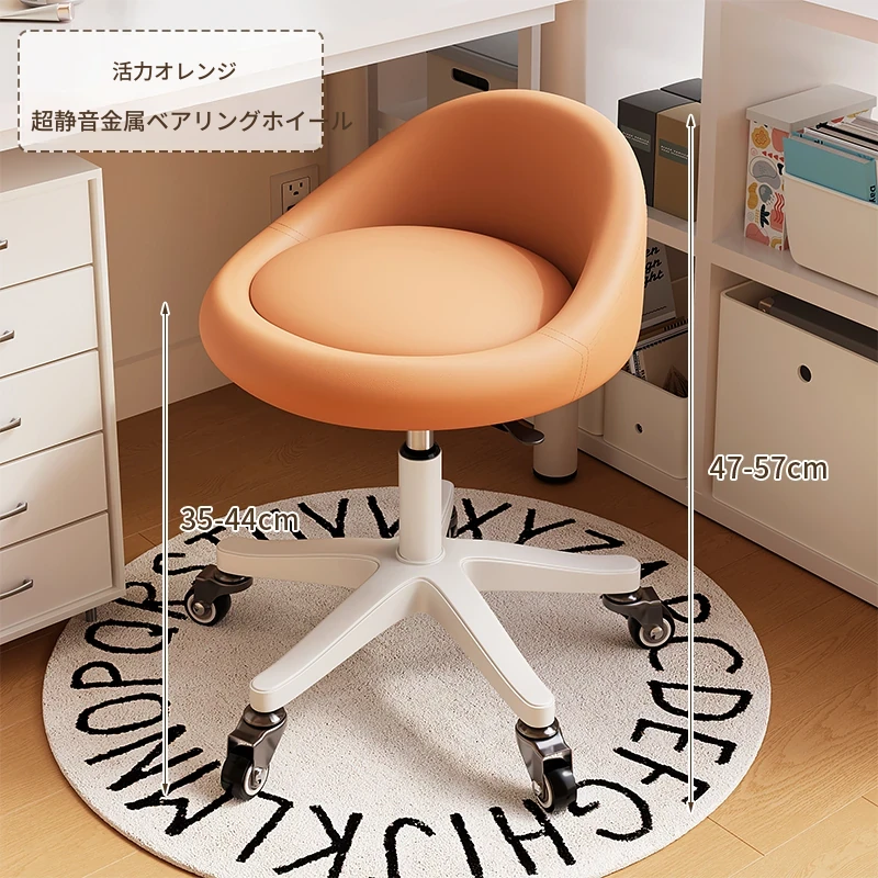 【座面メンテナンス不要】オレンジ-360°回転-広い座面-超静音ベアリングホイール