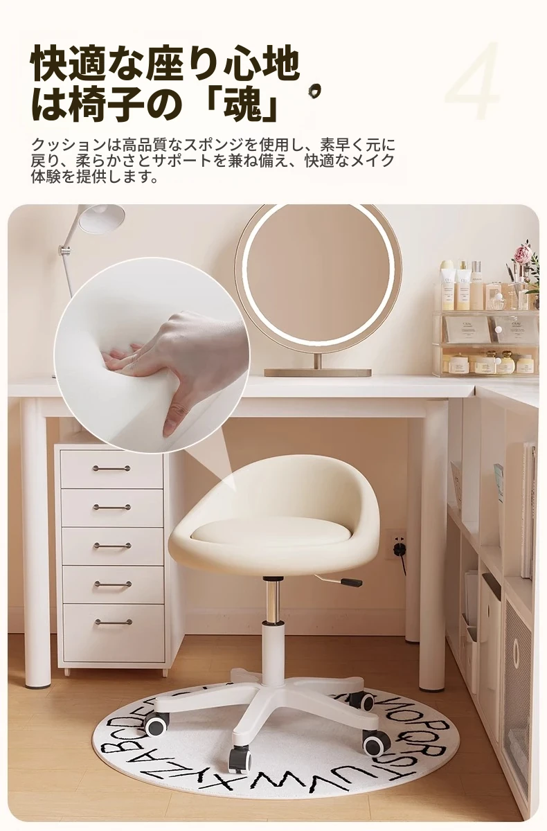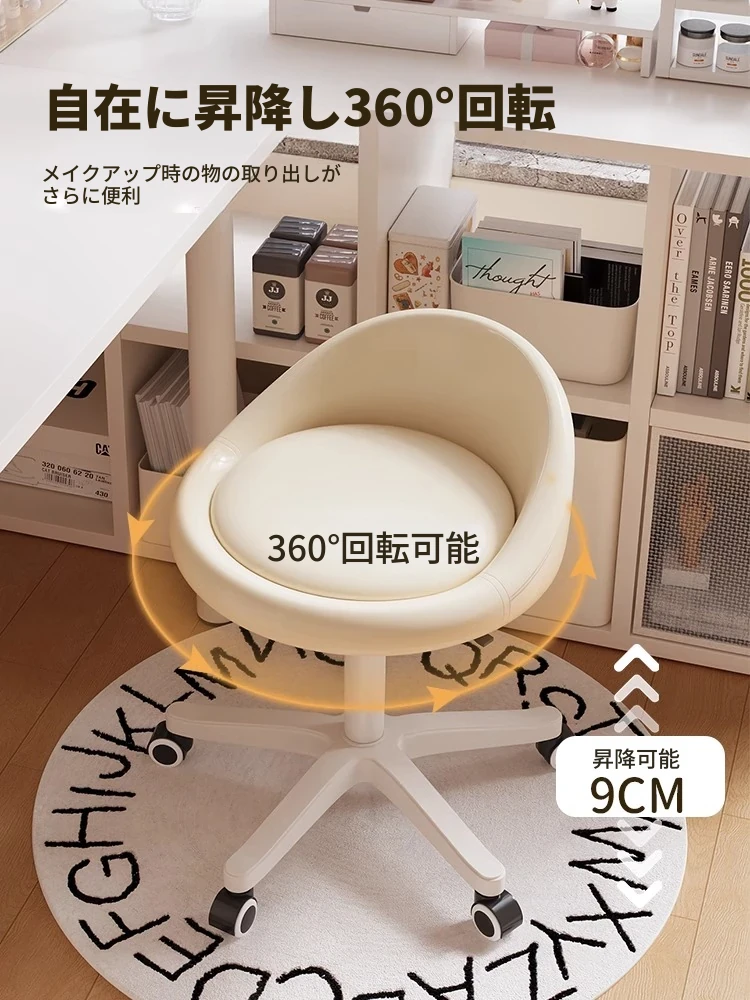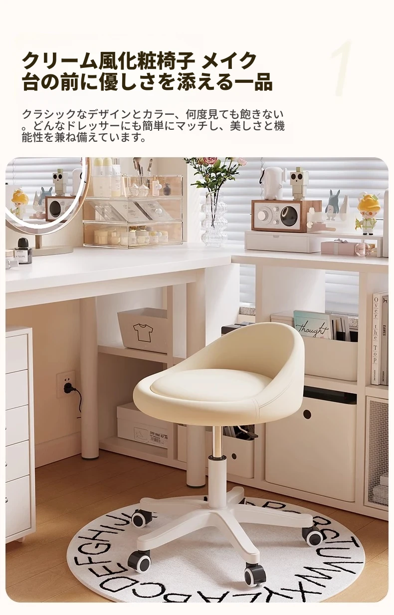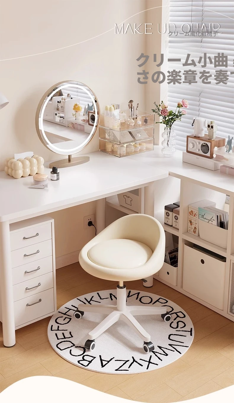 クリームカラーのオシャレなメイクチェア|高級感あふれる寝室用ドレッサー椅子|2024年新作|人気の女性向けリクライニングチェアで、快適なメイクタイムを実現!