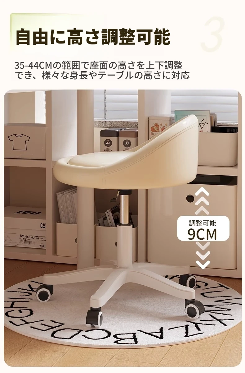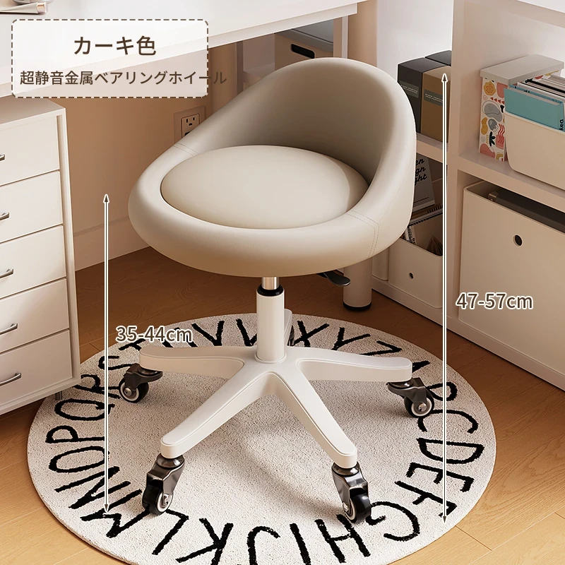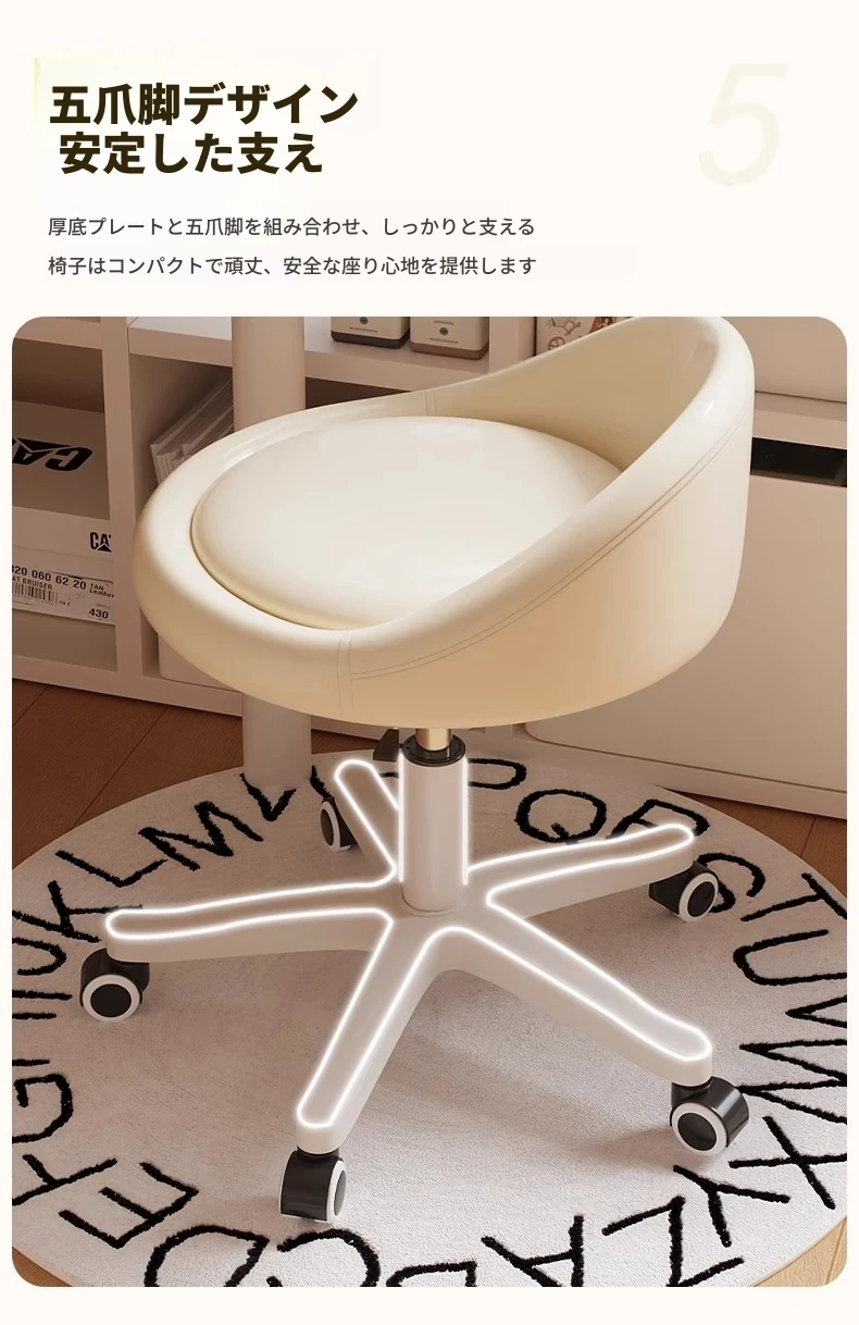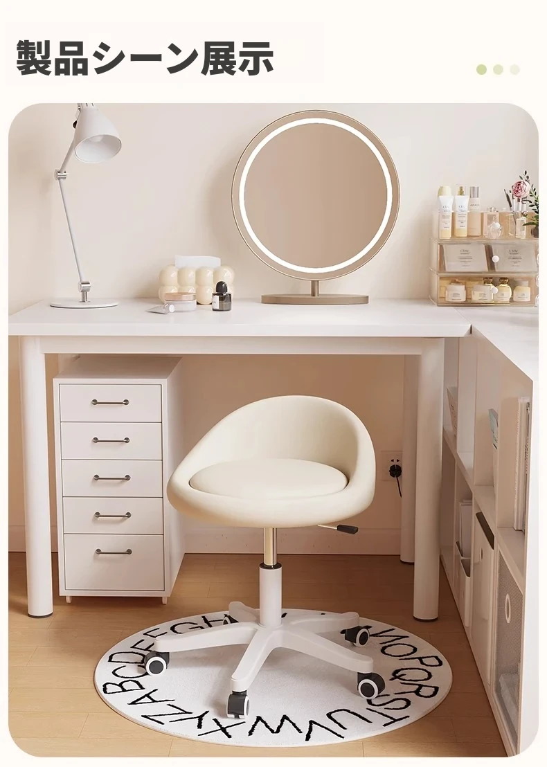 クリームカラーのオシャレなメイクチェア|高級感あふれる寝室用ドレッサー椅子|2024年新作|人気の女性向けリクライニングチェアで、快適なメイクタイムを実現!