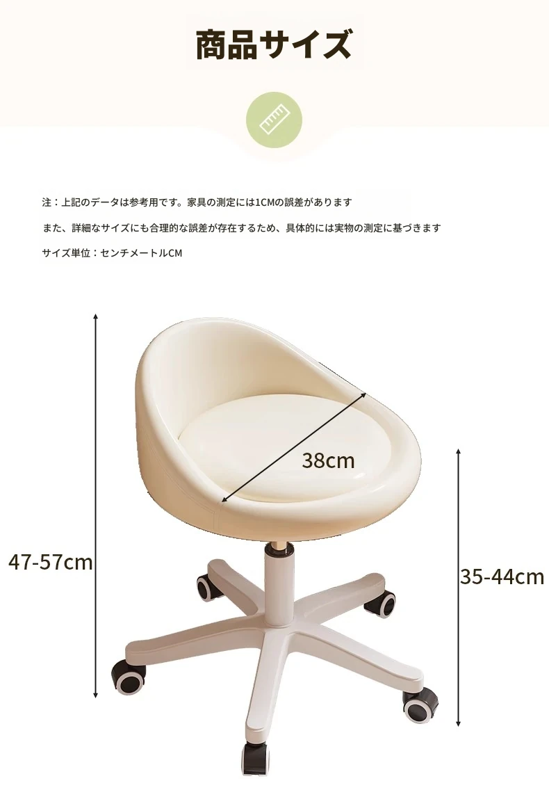 【座面メンテナンス不要】白-360°回転-広い座面-耐荷重全白ホイール