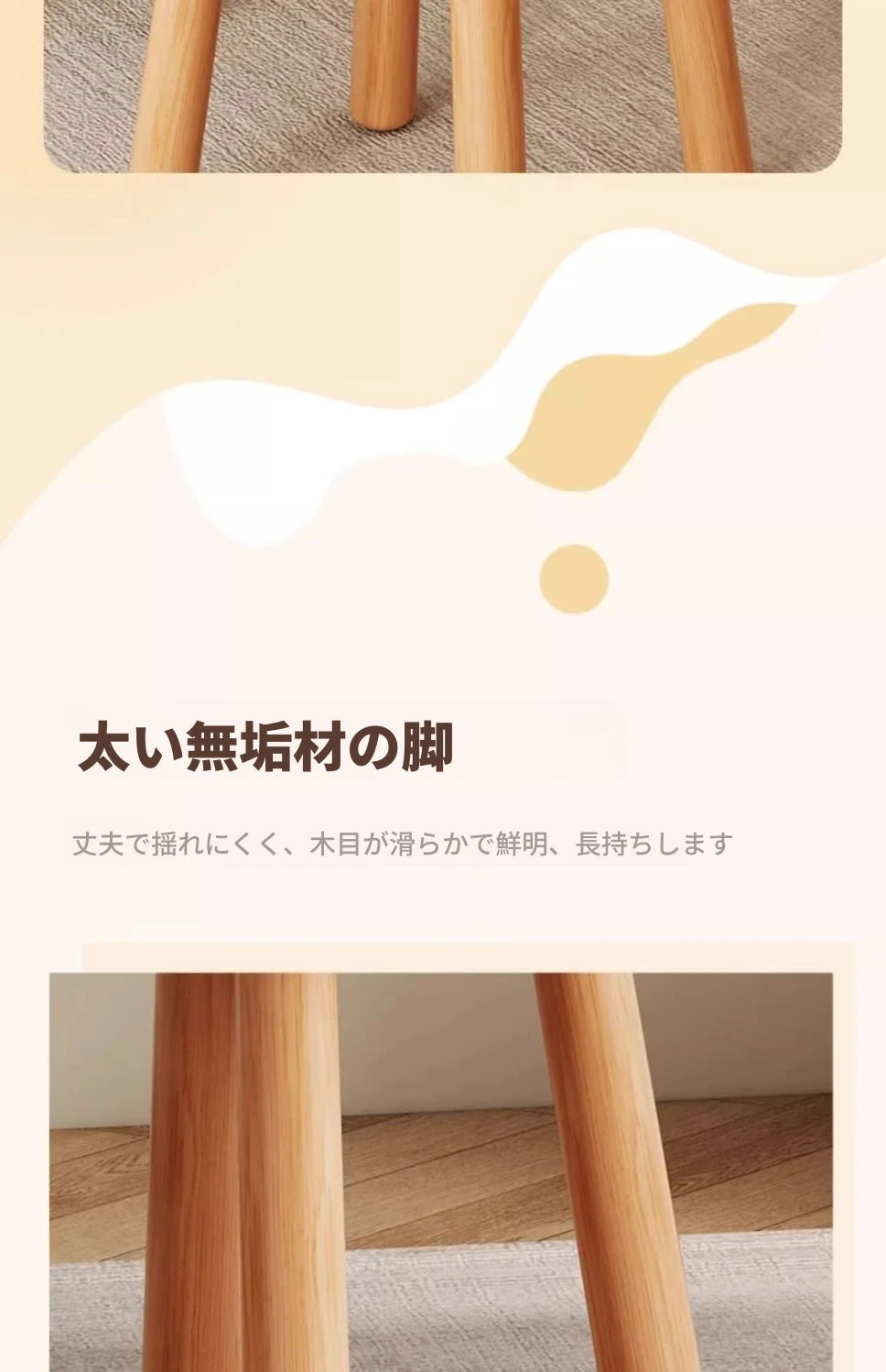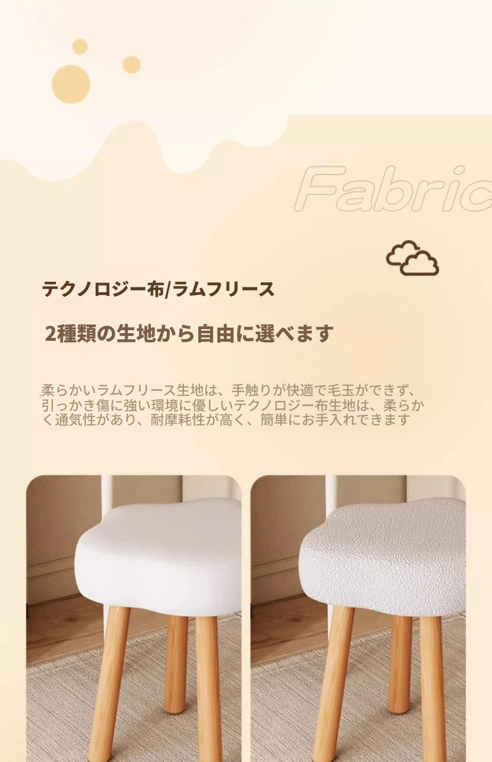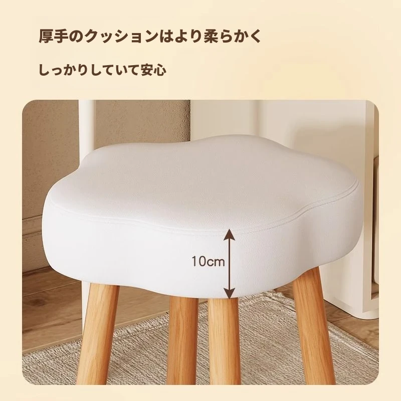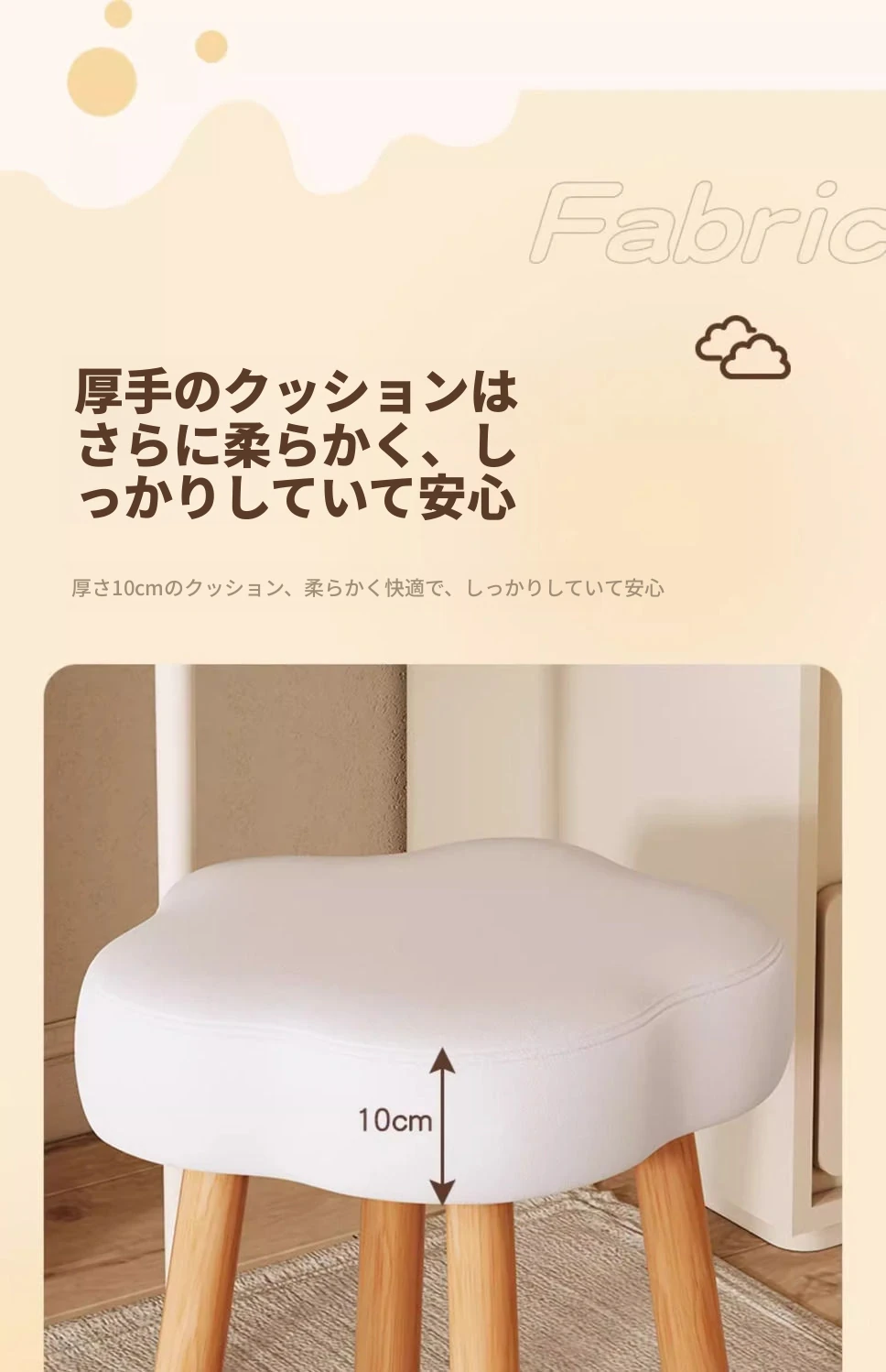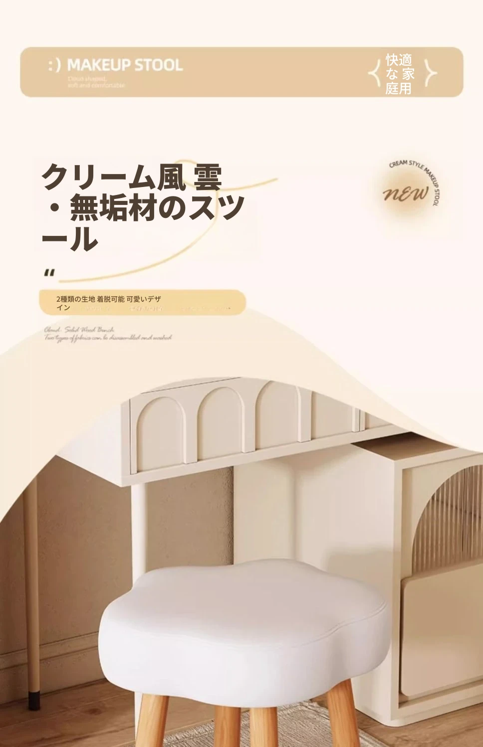 クリームカラーの化粧台椅子、女子向けのクラウドデザイン!シンプルで高級感あふれる無垢材使用、美容やネイルに最適なアイテム。あなたの寝室をおしゃれに演出します!