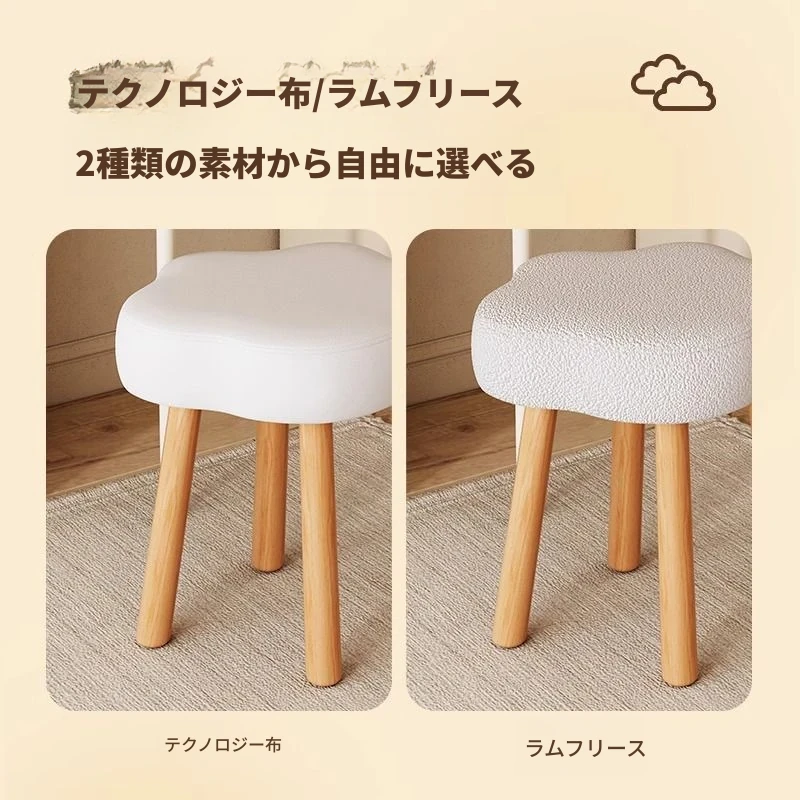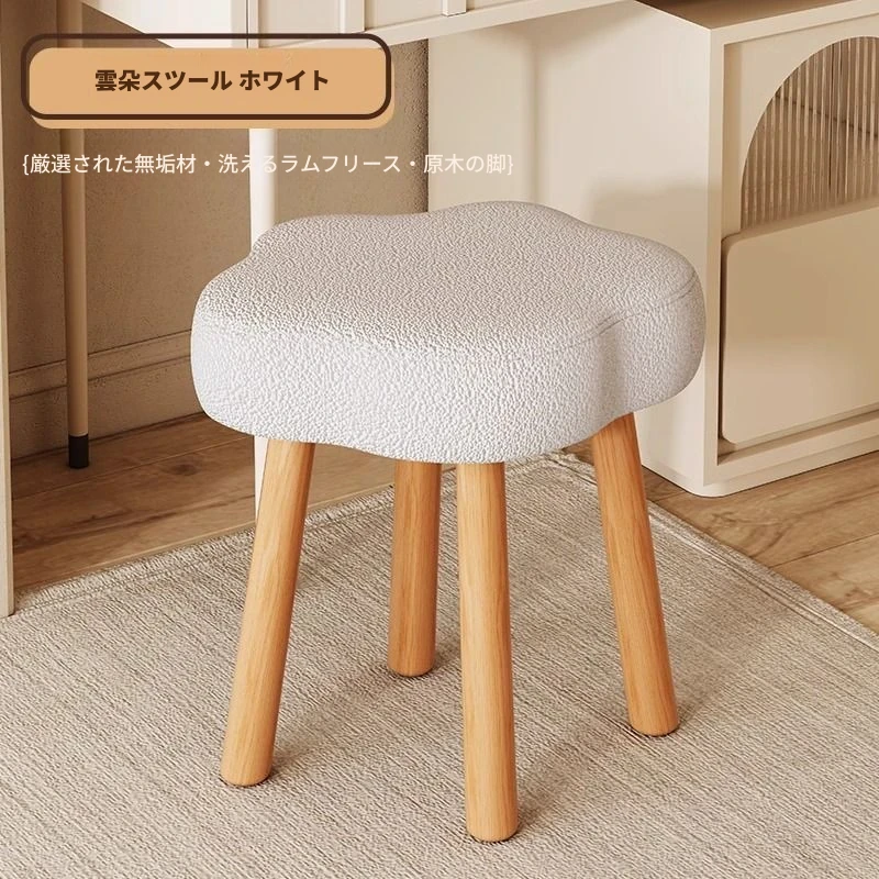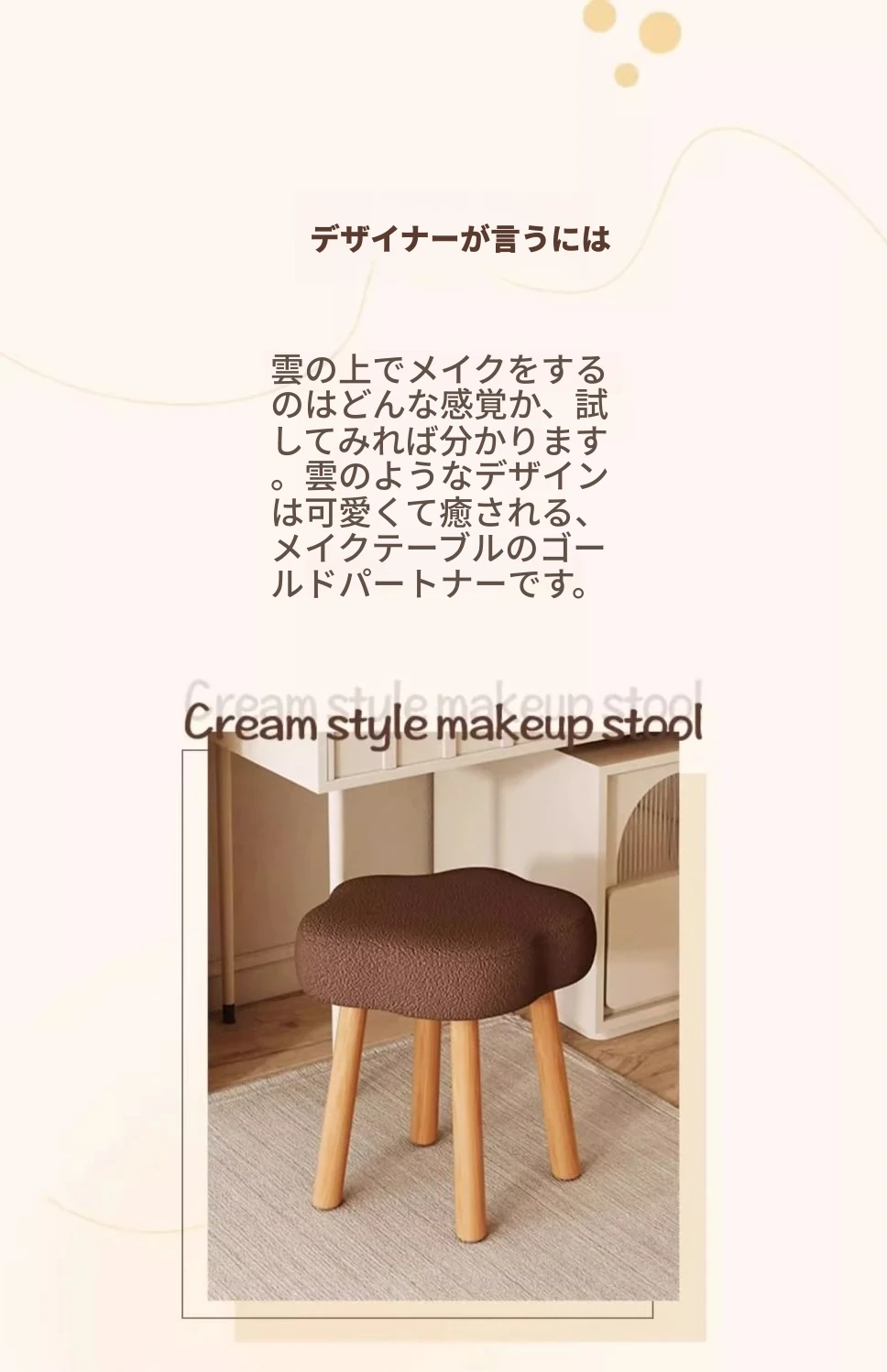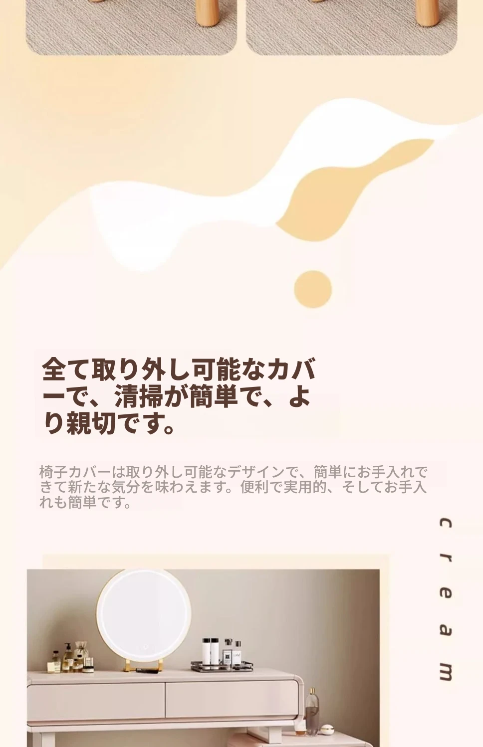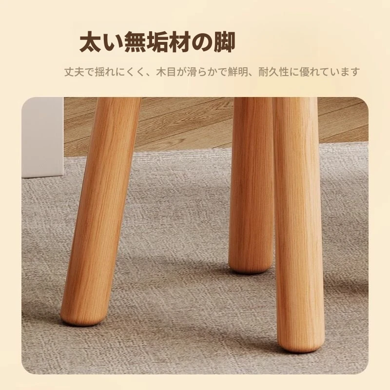 クリームカラーの化粧台椅子、女子向けのクラウドデザイン!シンプルで高級感あふれる無垢材使用、美容やネイルに最適なアイテム。あなたの寝室をおしゃれに演出します!