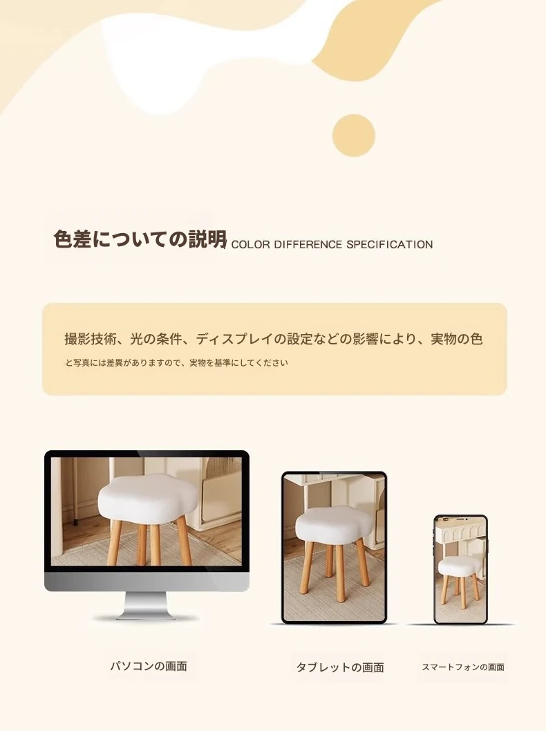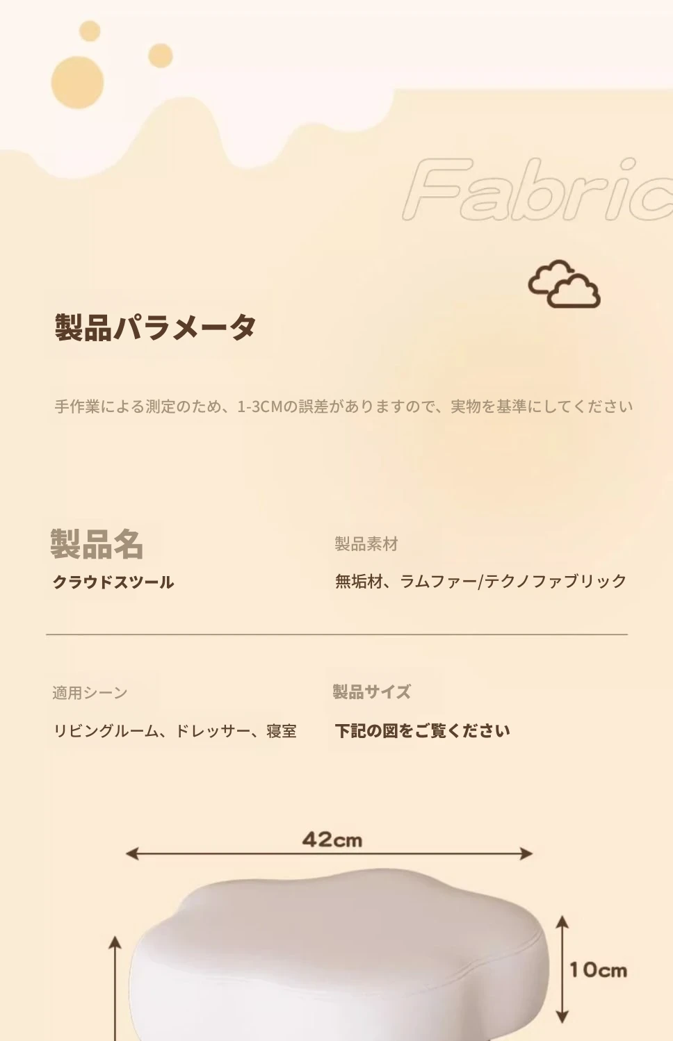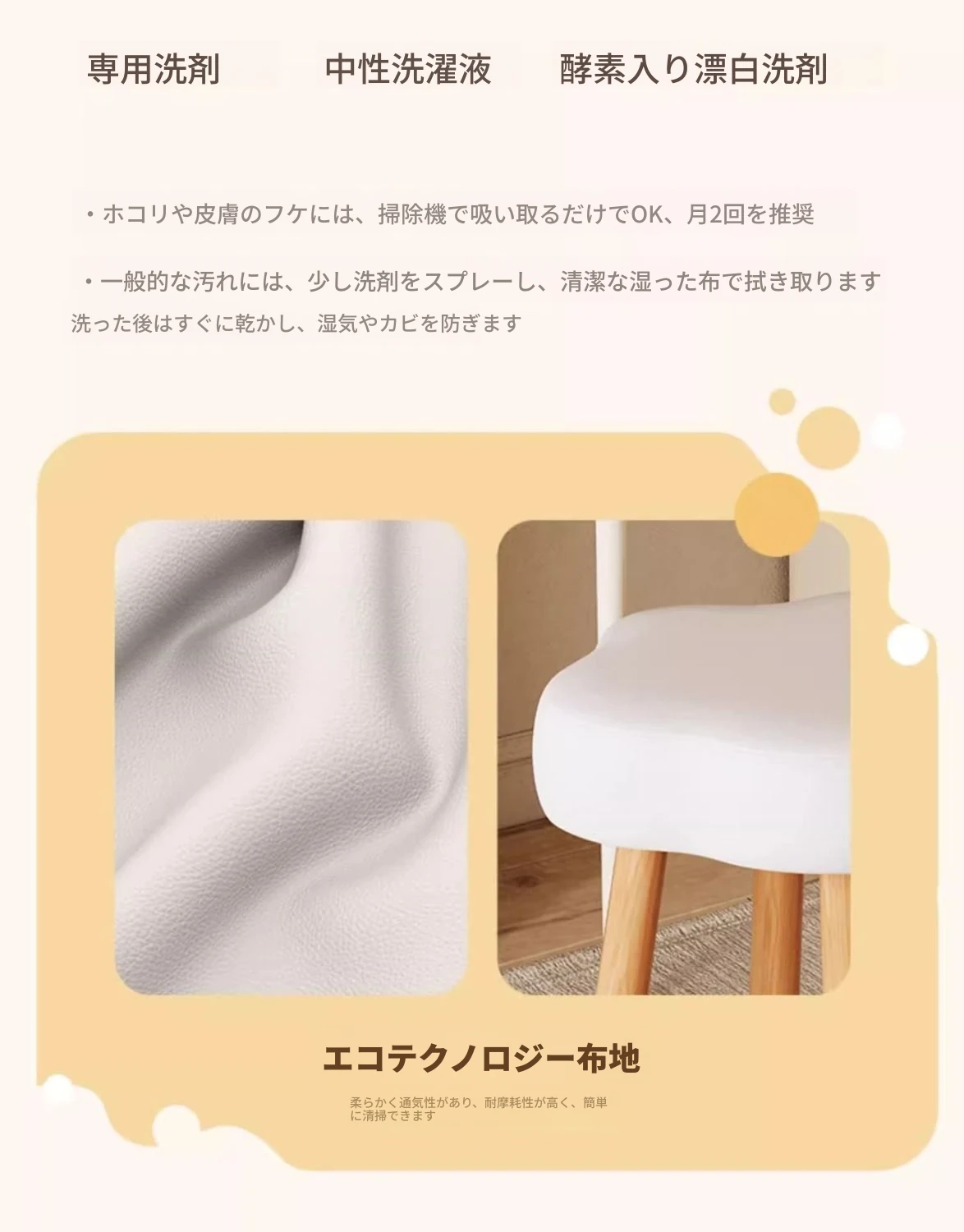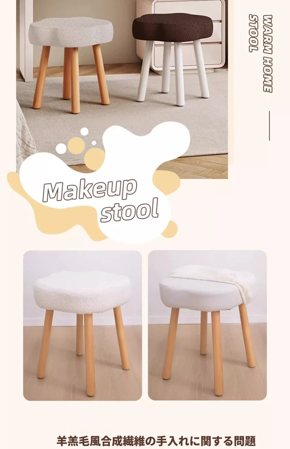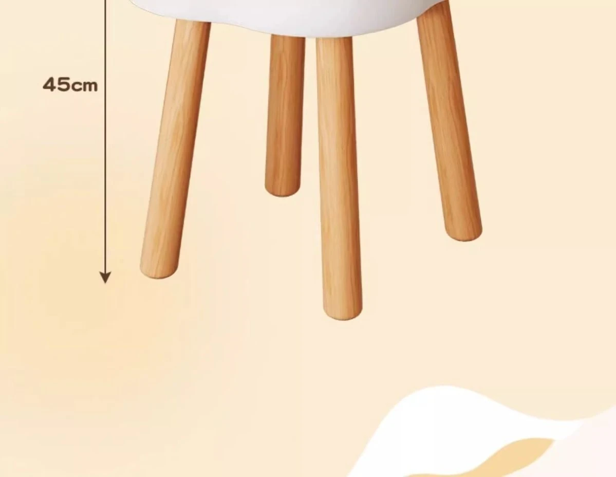 クリームカラーの化粧台椅子、女子向けのクラウドデザイン!シンプルで高級感あふれる無垢材使用、美容やネイルに最適なアイテム。あなたの寝室をおしゃれに演出します!