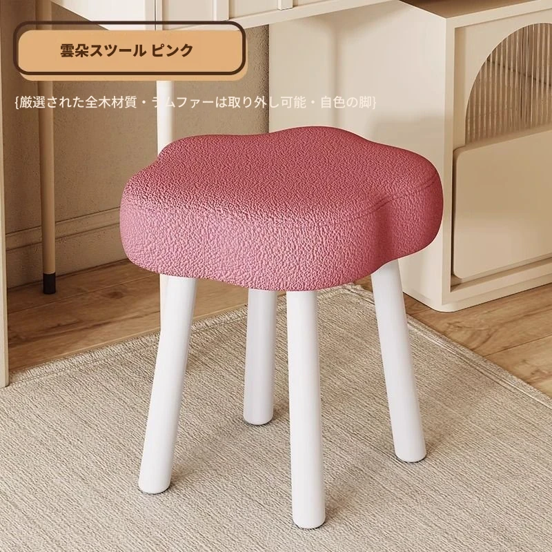 【無垢材の脚・ホワイト】ラムファー-ピンク(取り外し可能なデザイン)クリーム風雲の無垢材スツール