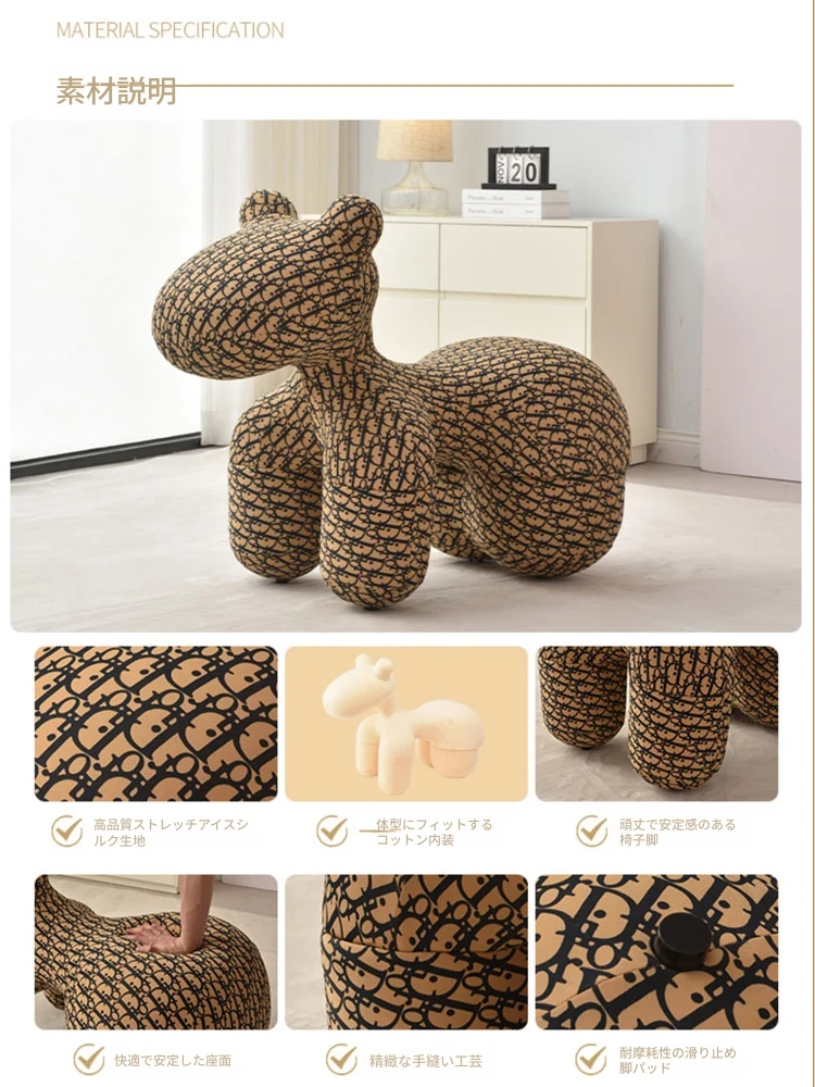 デザイナーのクリエイティブな動物椅子!おしゃれでかわいい小馬の一人掛けソファ。リビングや子供部屋にピッタリのカートゥーンチェア。インテリアのアクセントとしても大人気!