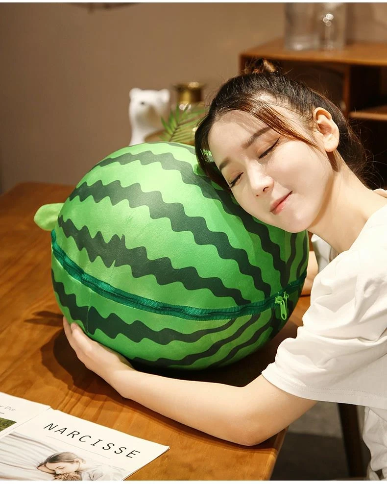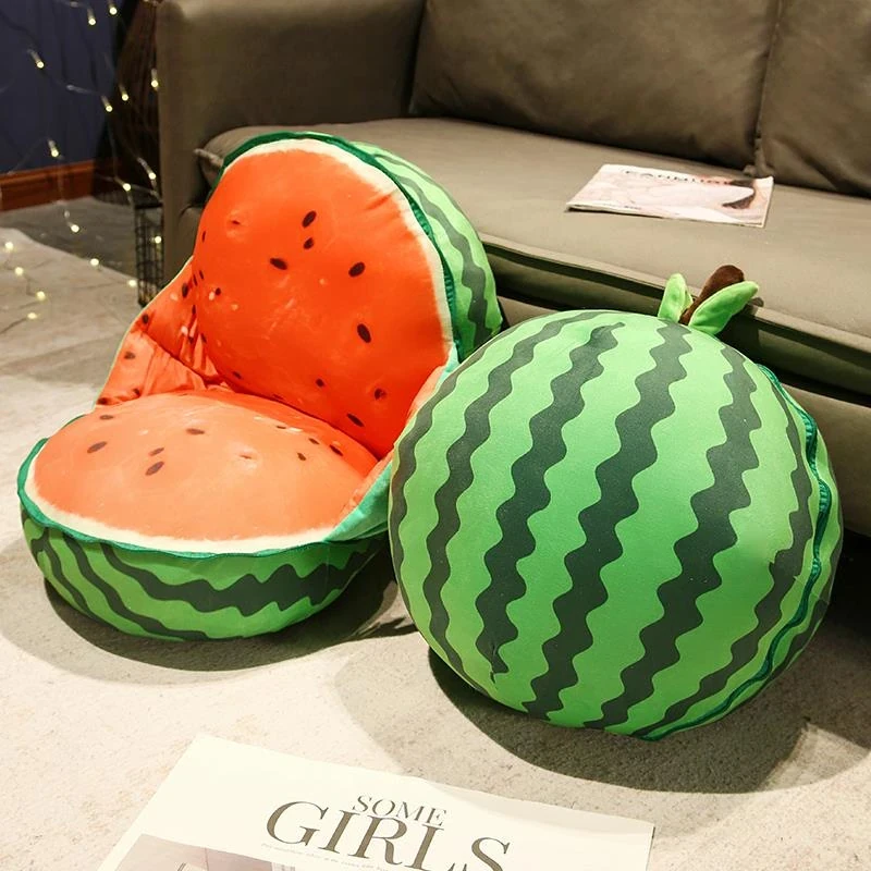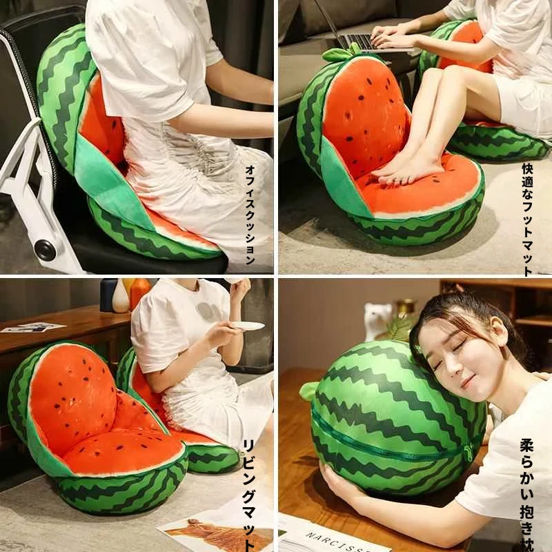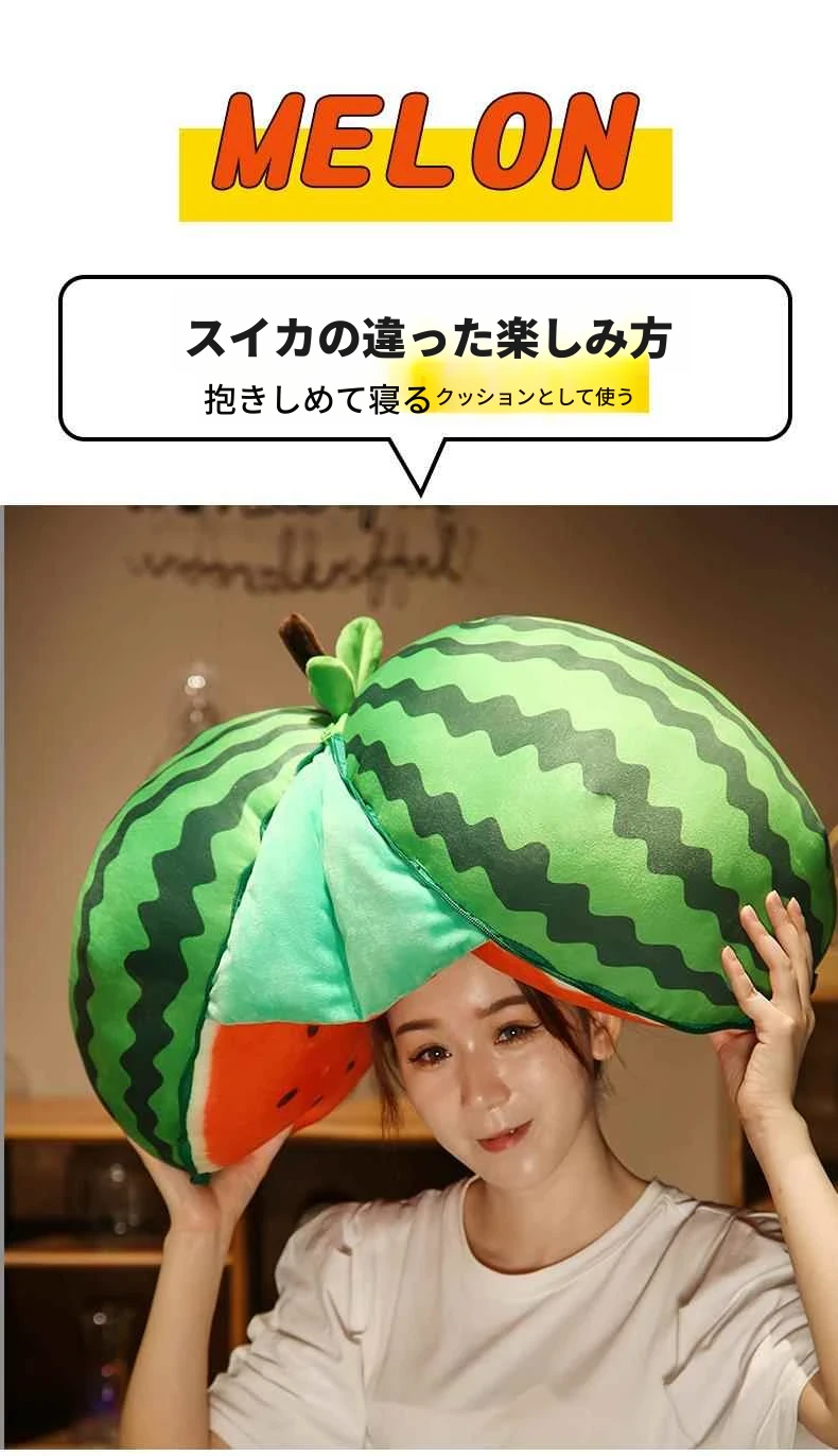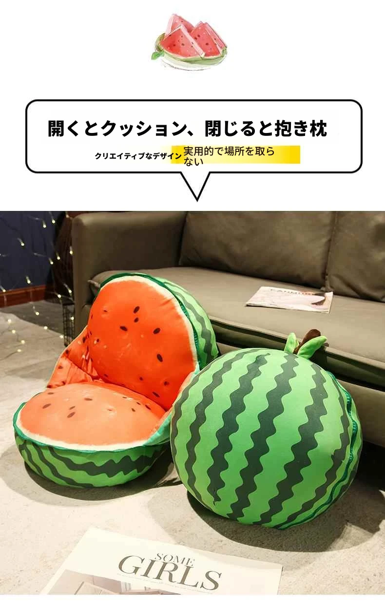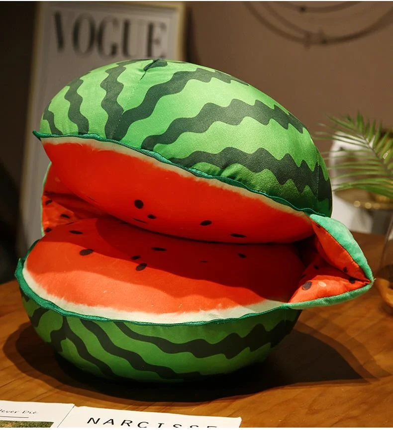 かわいいウォーターメロン抱き枕・クッション!リアルなデザインのふわふわマシュマロ素材。子供たちのソファやベッドにぴったり。お部屋を楽しく彩るフルーツ型ぬいぐるみ!