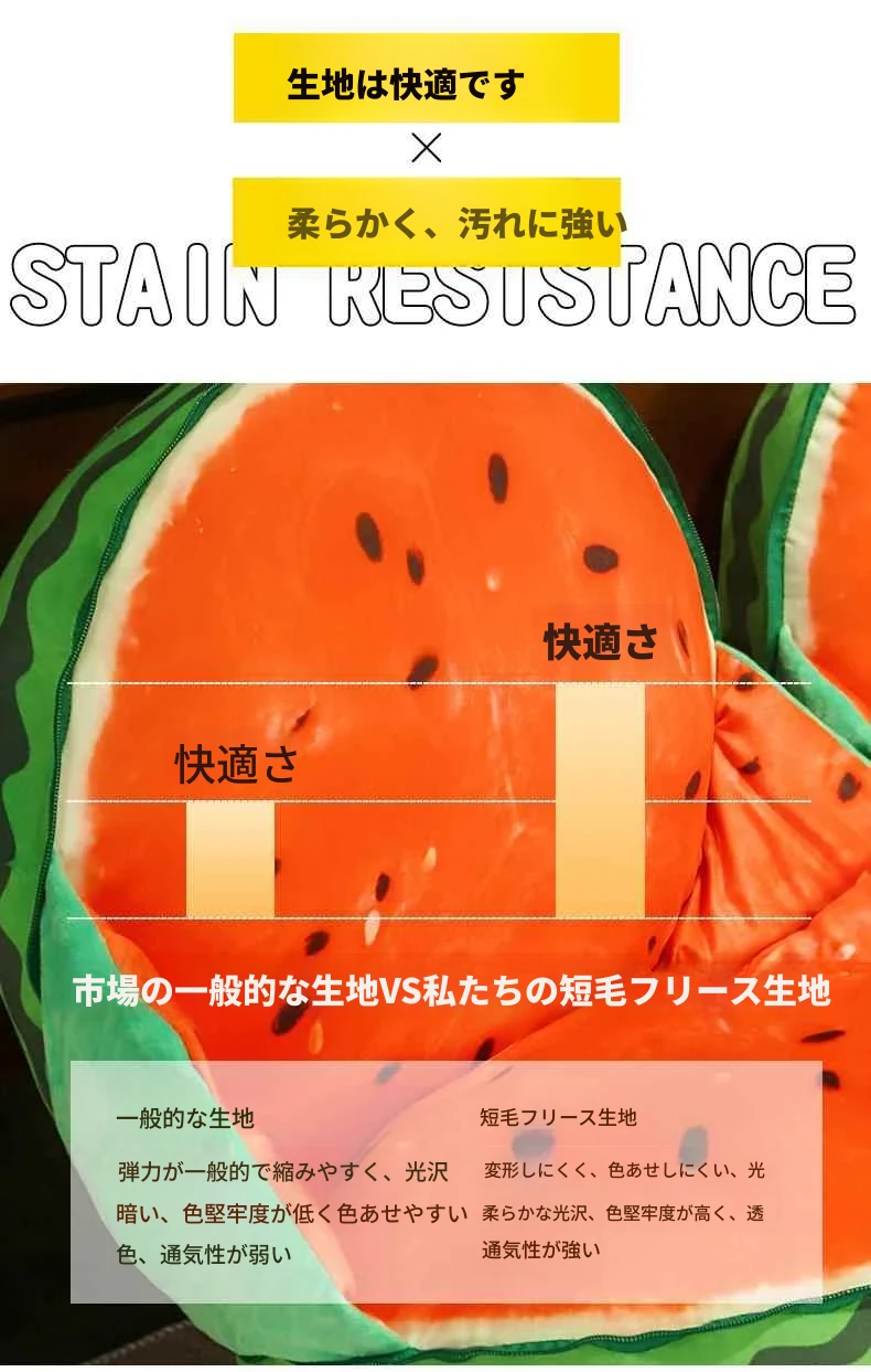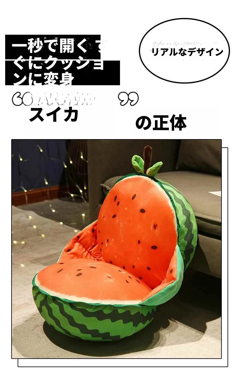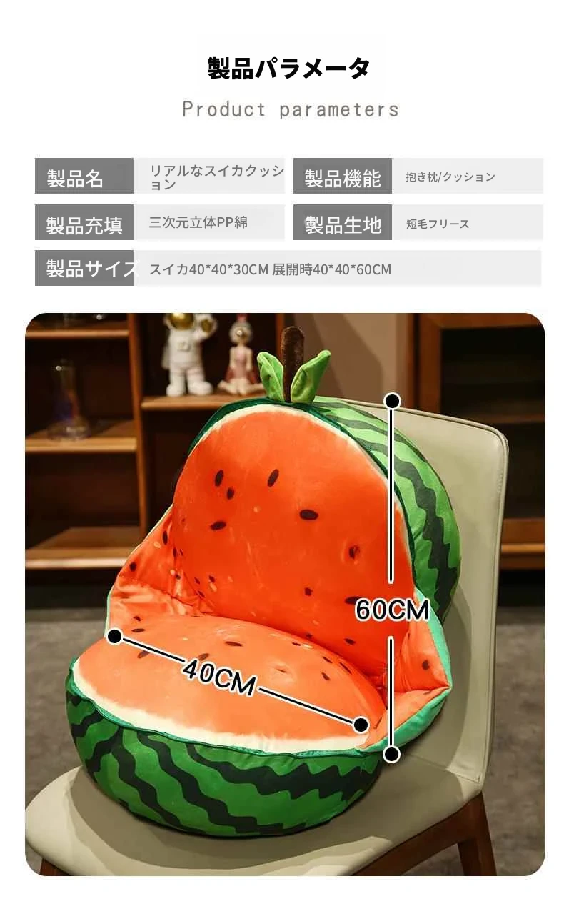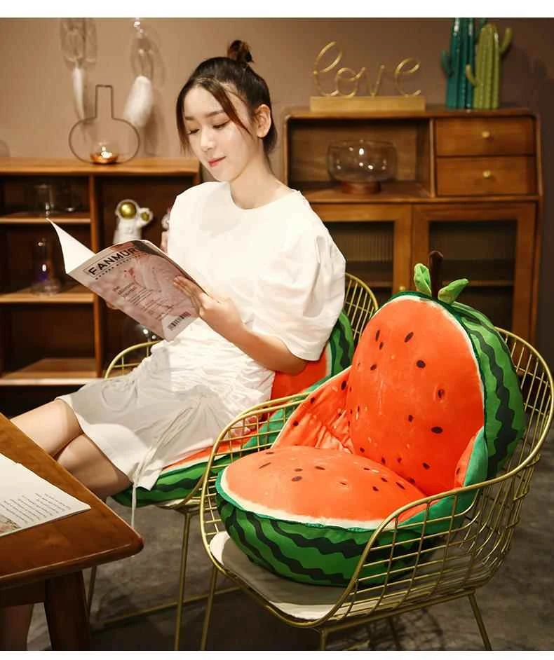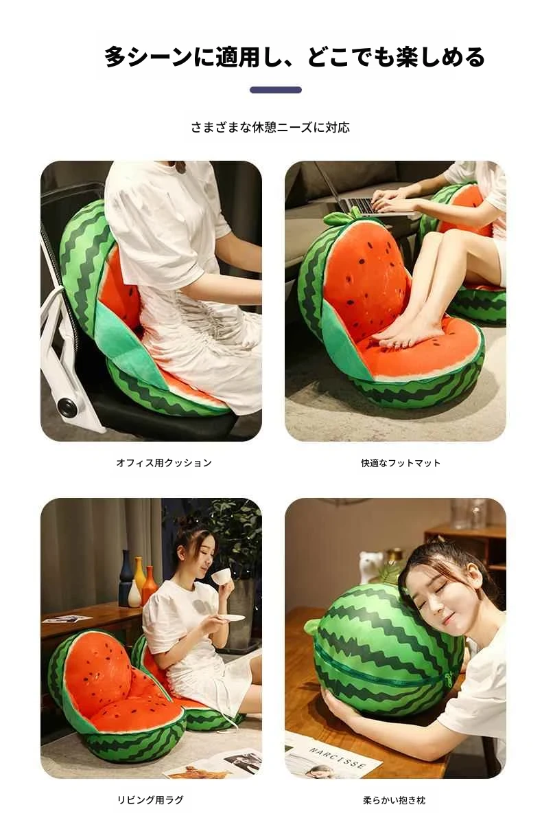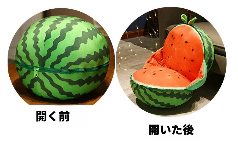 かわいいウォーターメロン抱き枕・クッション!リアルなデザインのふわふわマシュマロ素材。子供たちのソファやベッドにぴったり。お部屋を楽しく彩るフルーツ型ぬいぐるみ!