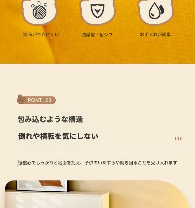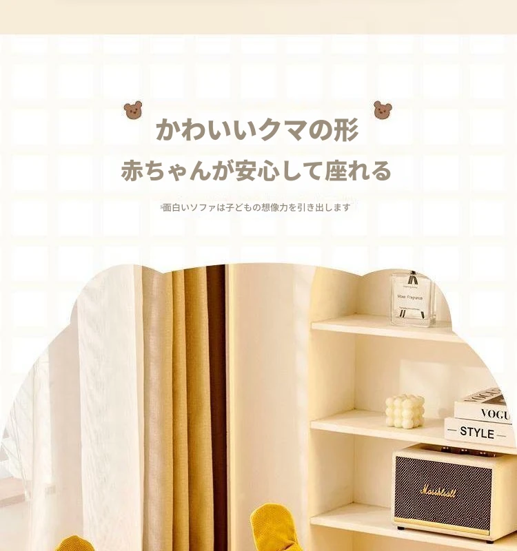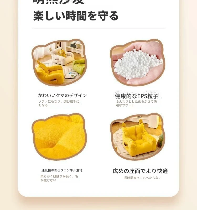 キュートでシンプルな赤ちゃん用ソファ!ペットの猫も安心してくつろげる、転倒防止設計の柔らかい背もたれ付き。お子様の遊び時間をより楽しく、安全にするベビーソファです。