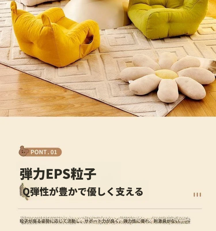 リラックスできる懶人ソファ!寝転んでも寝てもOK!タタミスタイルの小型バルコニー用、休憩に最適なビーズソファ。1人用の窓際ソファで、狭いスペースも有効活用!あなたのくつろぎ時間を演出します。