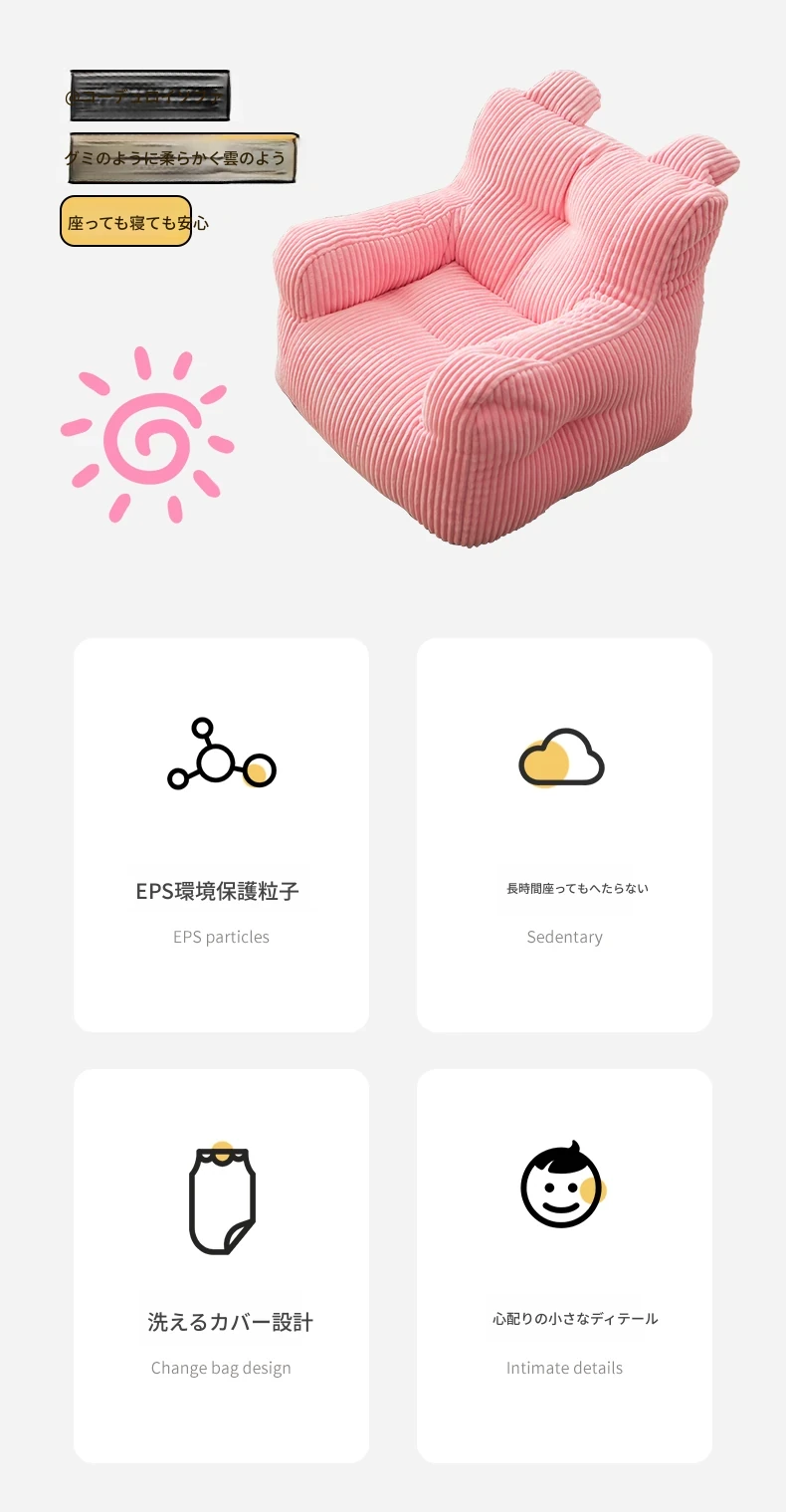 憨豆包 キッズソファー 可愛いミニ豆袋ソファー - 赤ちゃんや女の子にぴったりのリラックス空間!タタミスタイルで快適な座り心地!