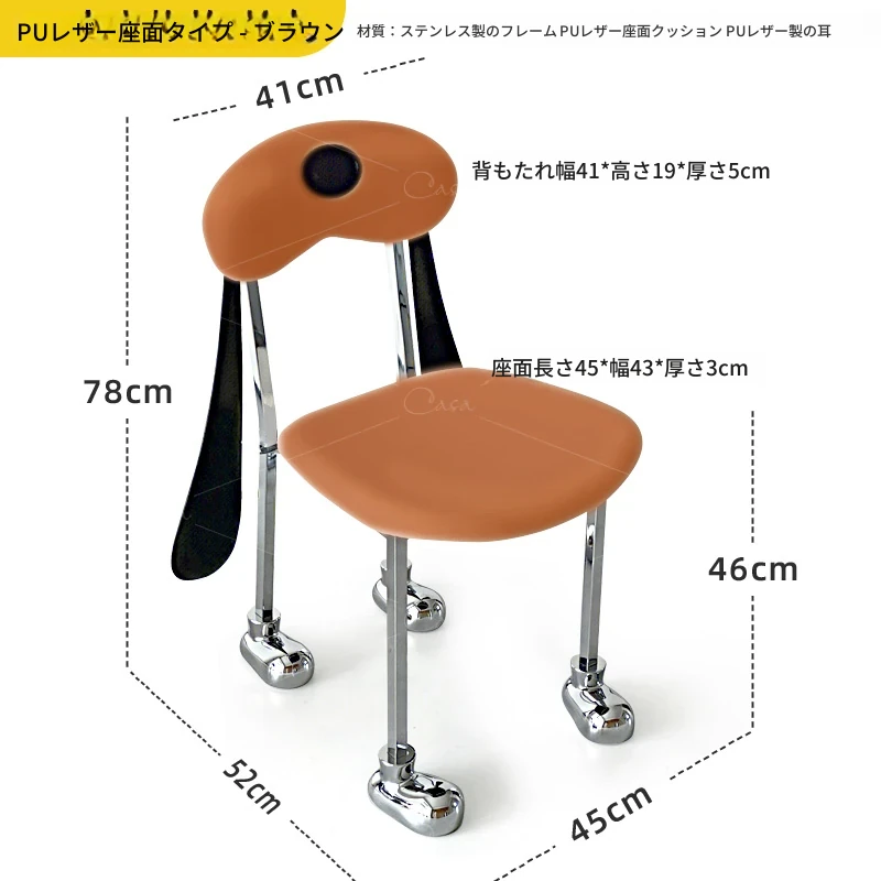 中古犬用チェア-PUレザークッション付き-オレンジブラウンステンレス脚