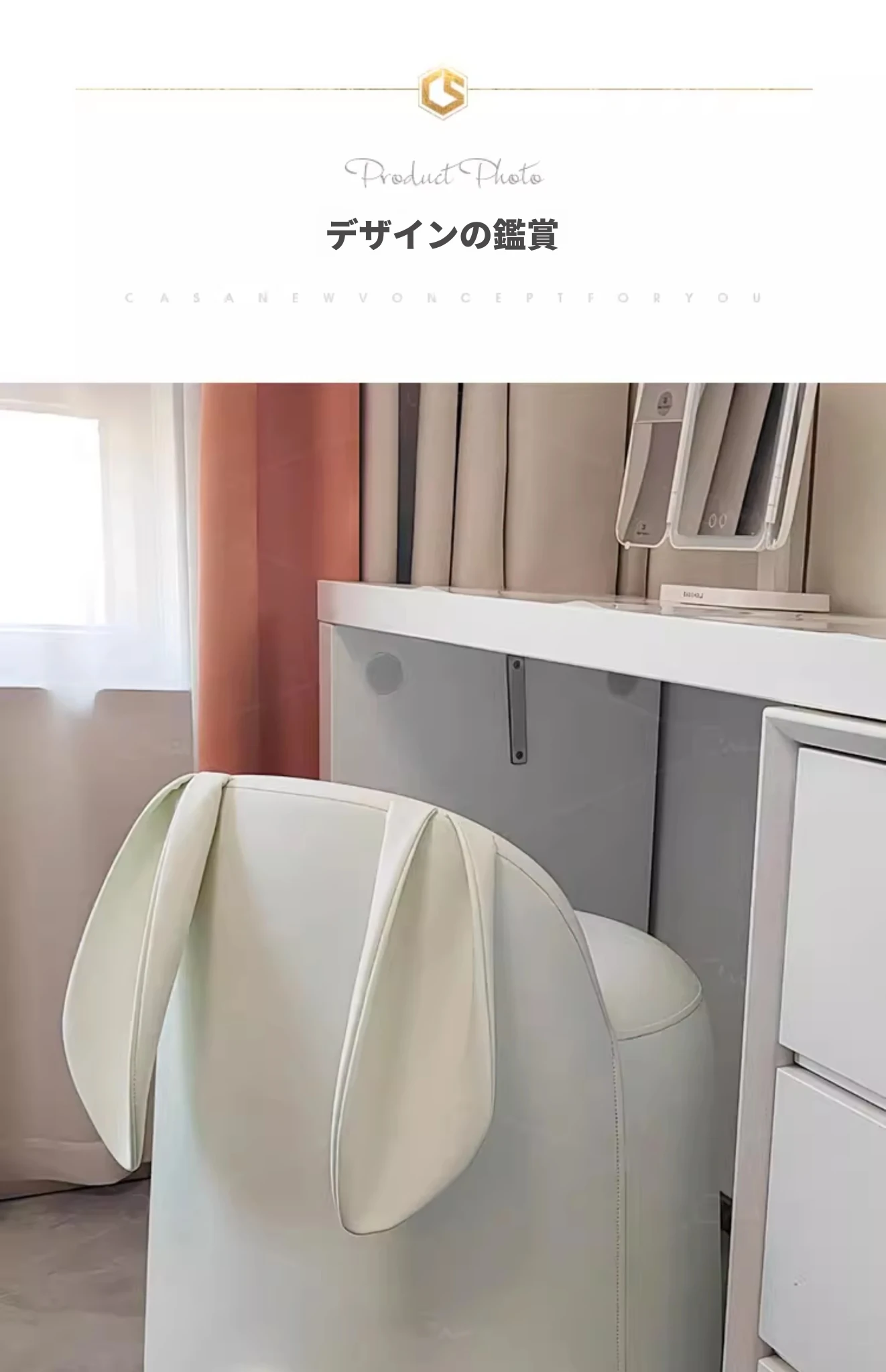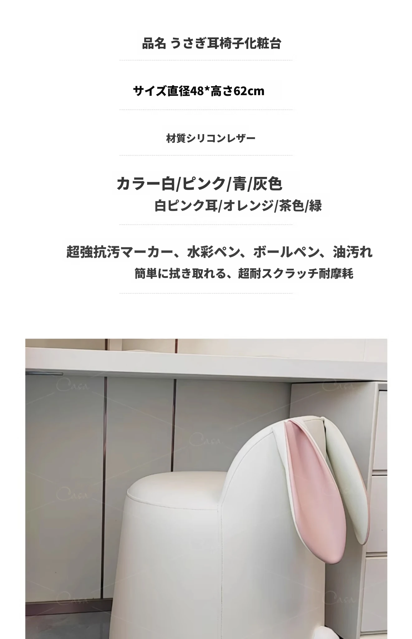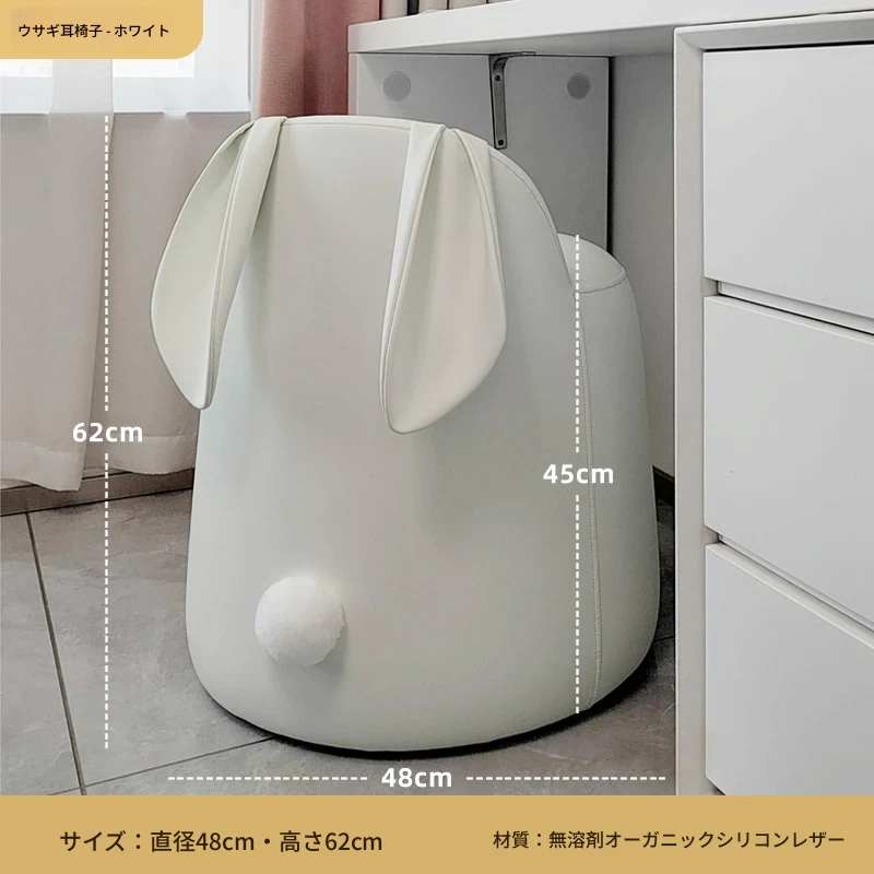 インスタ風ウサギの寝室用ドレッシングスツール!カートゥーンデザインのクリエイティブな女の子のための可愛い子供部屋用スツール。おしゃれなウサギの耳付きメイクスツールで、特別な空間を演出しよう!