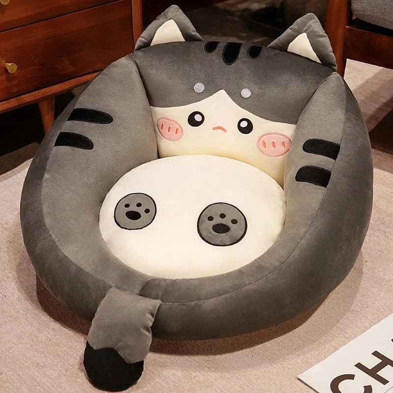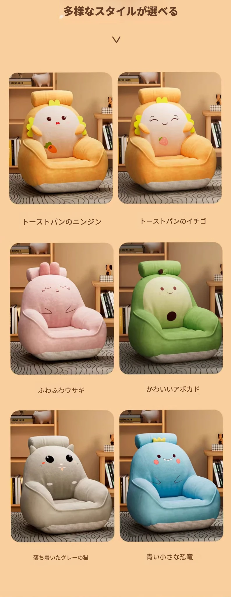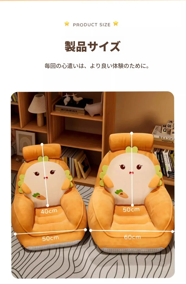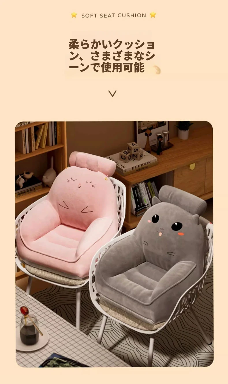 かわいいカートゥーンデザインの畳ソファ!リラックスできる座り心地で、リビングや寝室、窓辺にもぴったり。読書やくつろぎタイムに最適なクッションと背もたれ付きの可愛いスツール。