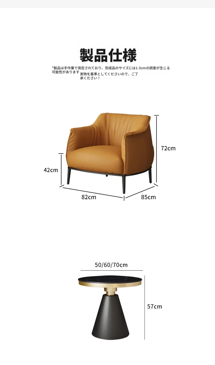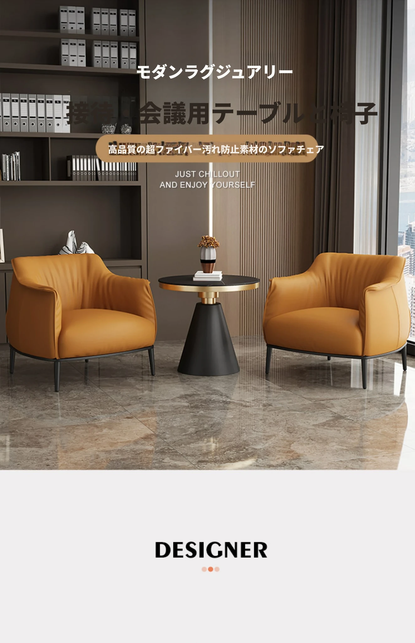 1テーブル2椅子+50*57cm【オレンジ/超ファイバー皮】