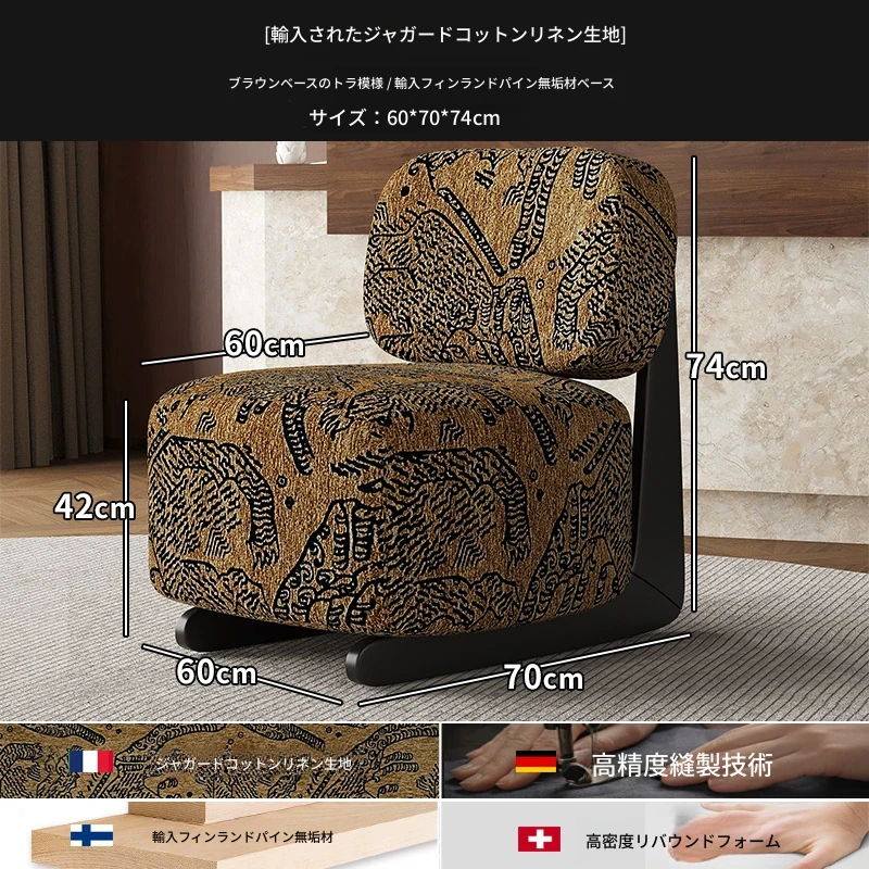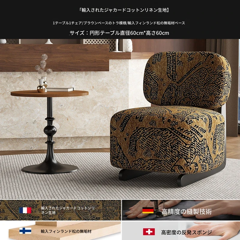 1テーブル1チェア+60*/60cm【ブラウン底トラ模様/輸入コットンリネン/輸入フィンランドパイン無垢材ベース】