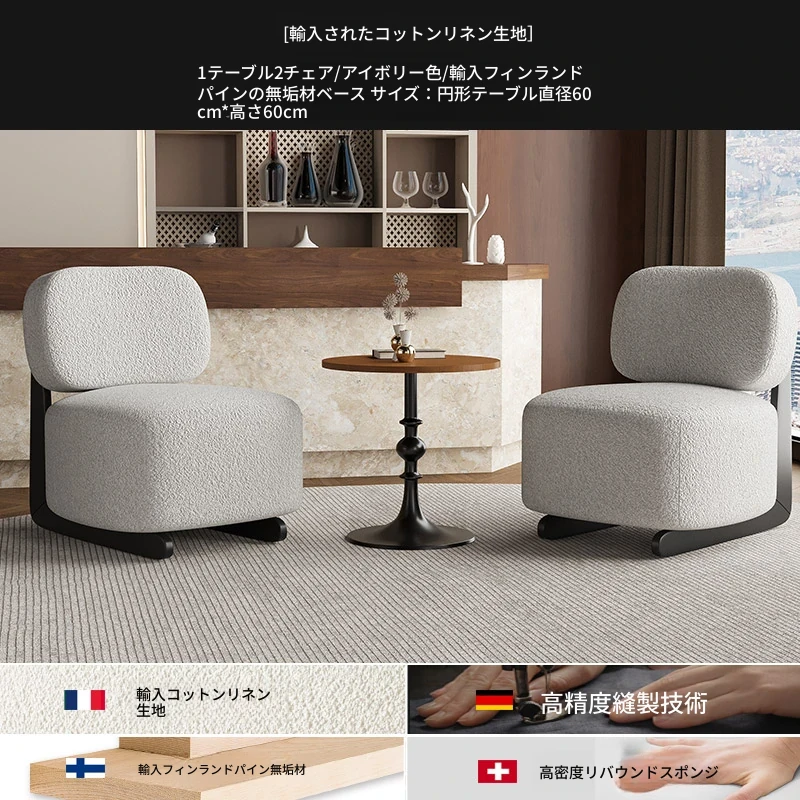 1テーブル2チェア+60*/60cm【ヤンメイの木/輸入コットンリネン/輸入フィンランドパイン無垢材ベース】