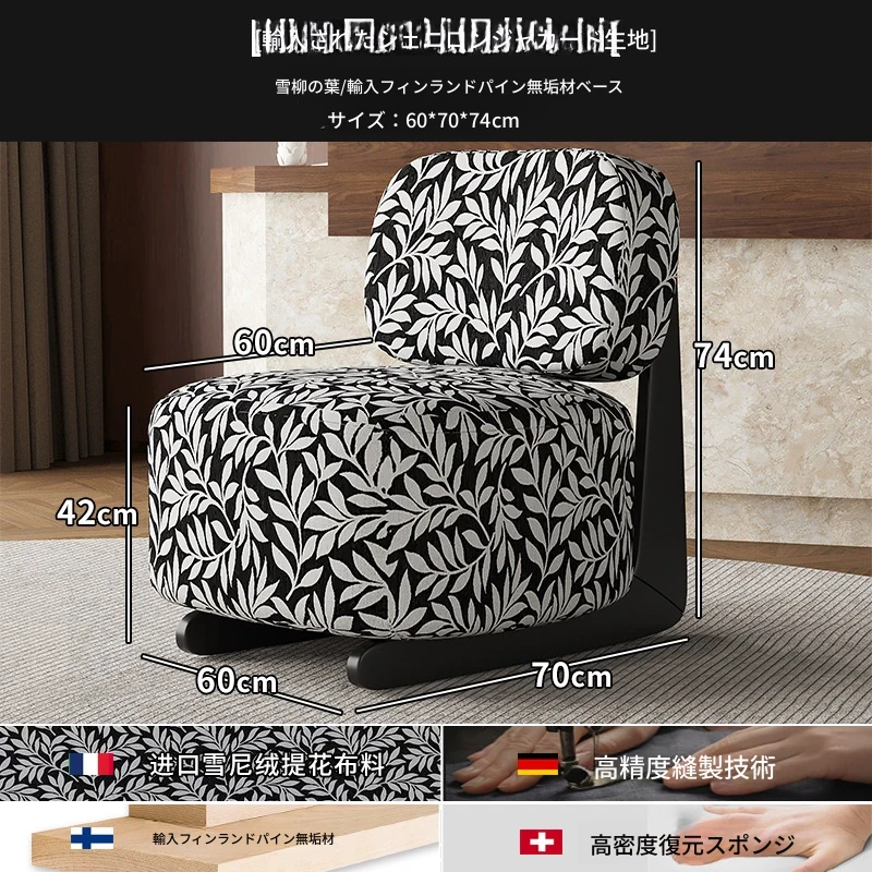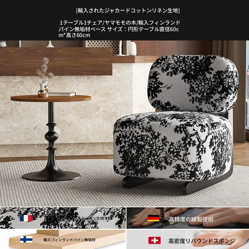 1テーブル1チェア+60*/60cm【雪柳の葉/輸入シェニロン/輸入フィンランドパイン無垢材ベース】