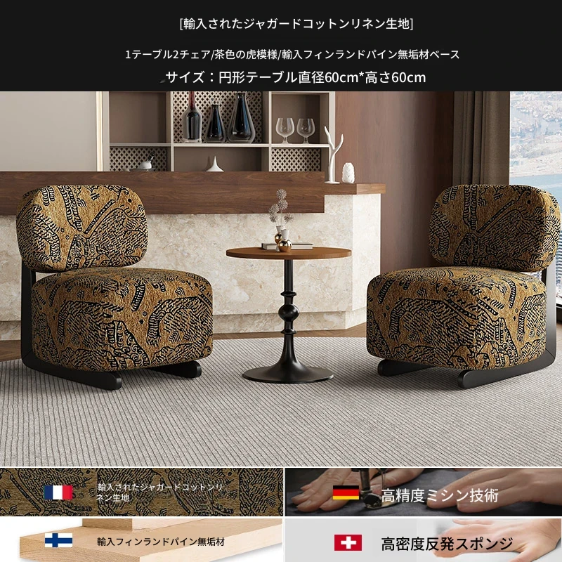 1テーブル2チェア+60*/60cm【トラ模様/輸入コットンリネン/輸入フィンランドパイン無垢材ベース】