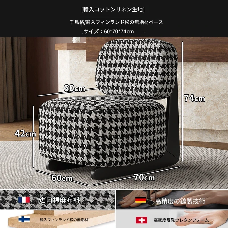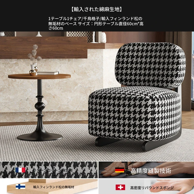 1テーブル1チェア+60*/60cm【千鳥格子/輸入コットンリネン/輸入フィンランドパイン無垢材ベース】