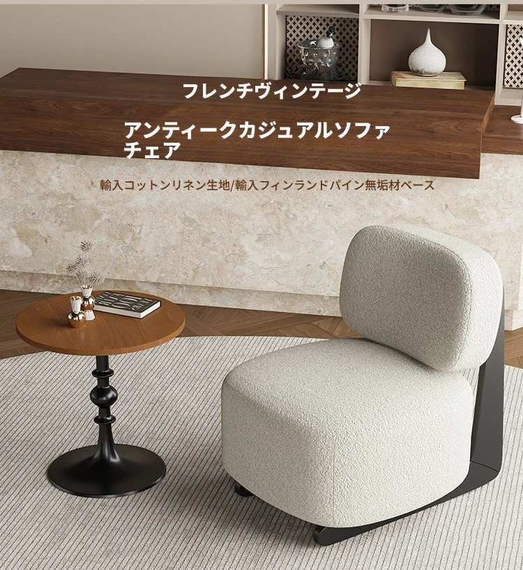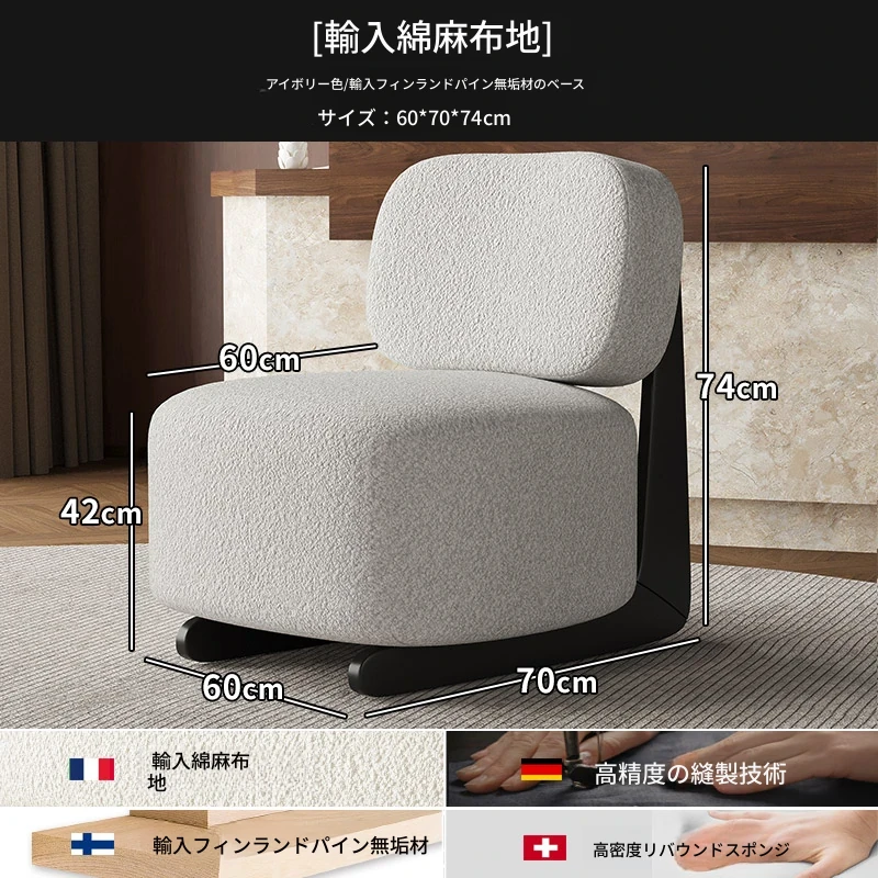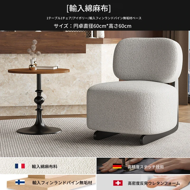 1テーブル1チェア+60*/60cm【アイボリー/輸入コットンリネン/輸入フィンランドパイン無垢材ベース】