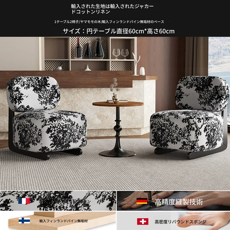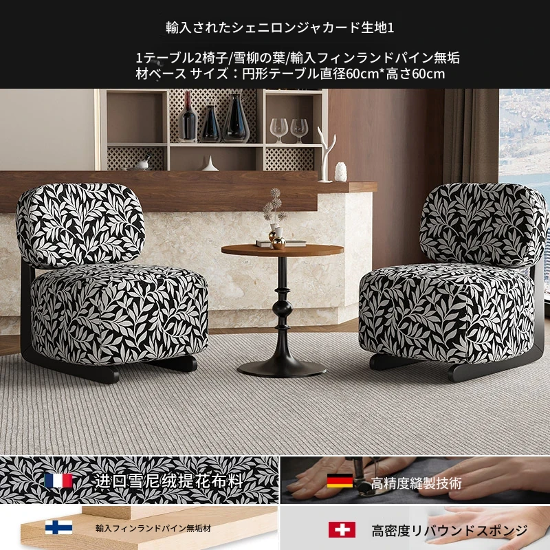 1テーブル2チェア+60*/60cm【雪柳の葉/輸入シェニロン/輸入フィンランドパイン無垢材ベース】