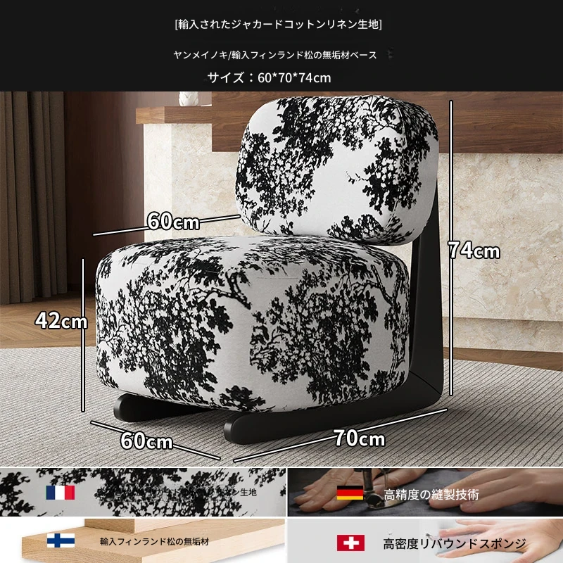 1テーブル1チェア+60*/60cm【ヤンメイの木/輸入コットンリネン/輸入フィンランドパイン無垢材ベース】