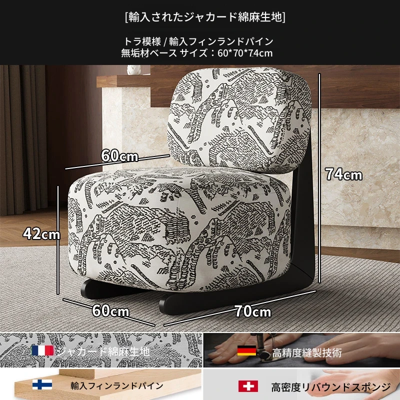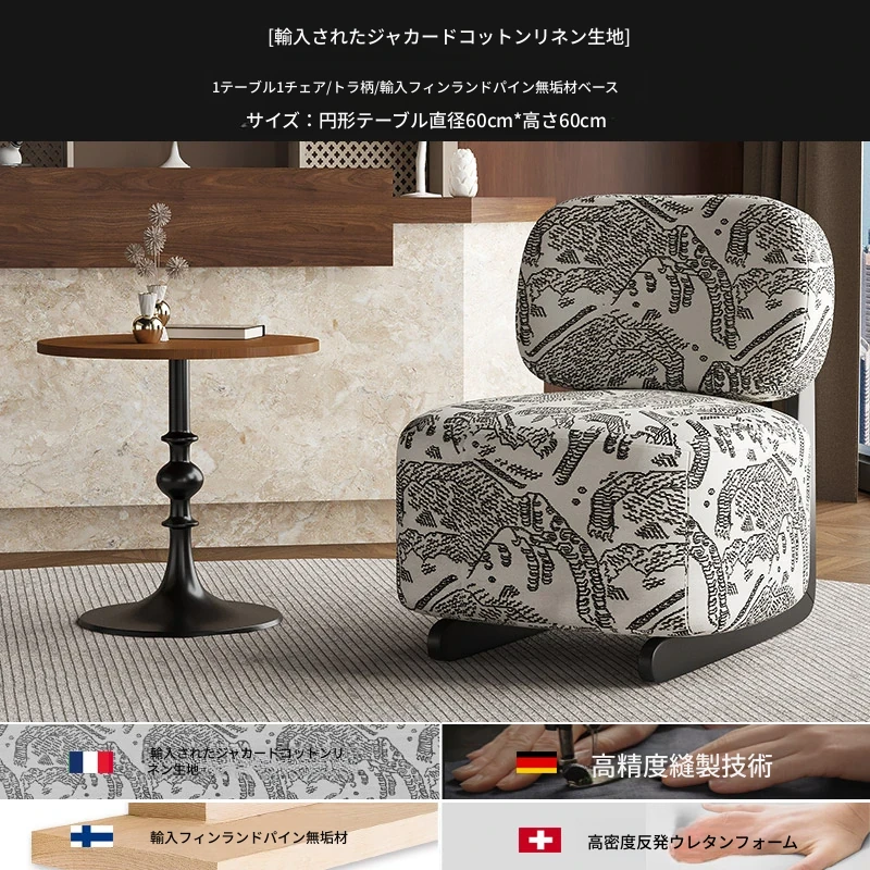 1テーブル1チェア+60*/60cm【トラ模様/輸入コットンリネン/輸入フィンランドパイン無垢材ベース】