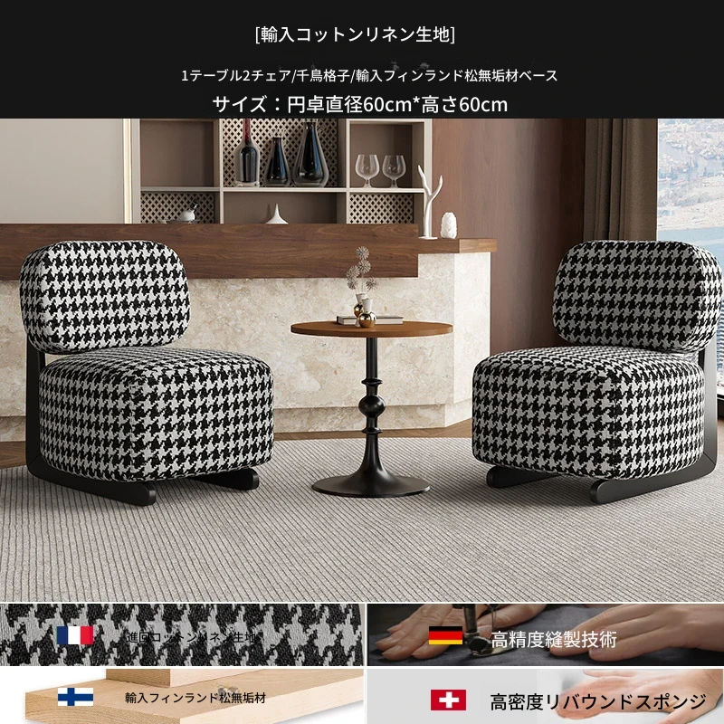 1テーブル2チェア+60*/60cm【千鳥格子/輸入コットンリネン/輸入フィンランドパイン無垢材ベース】