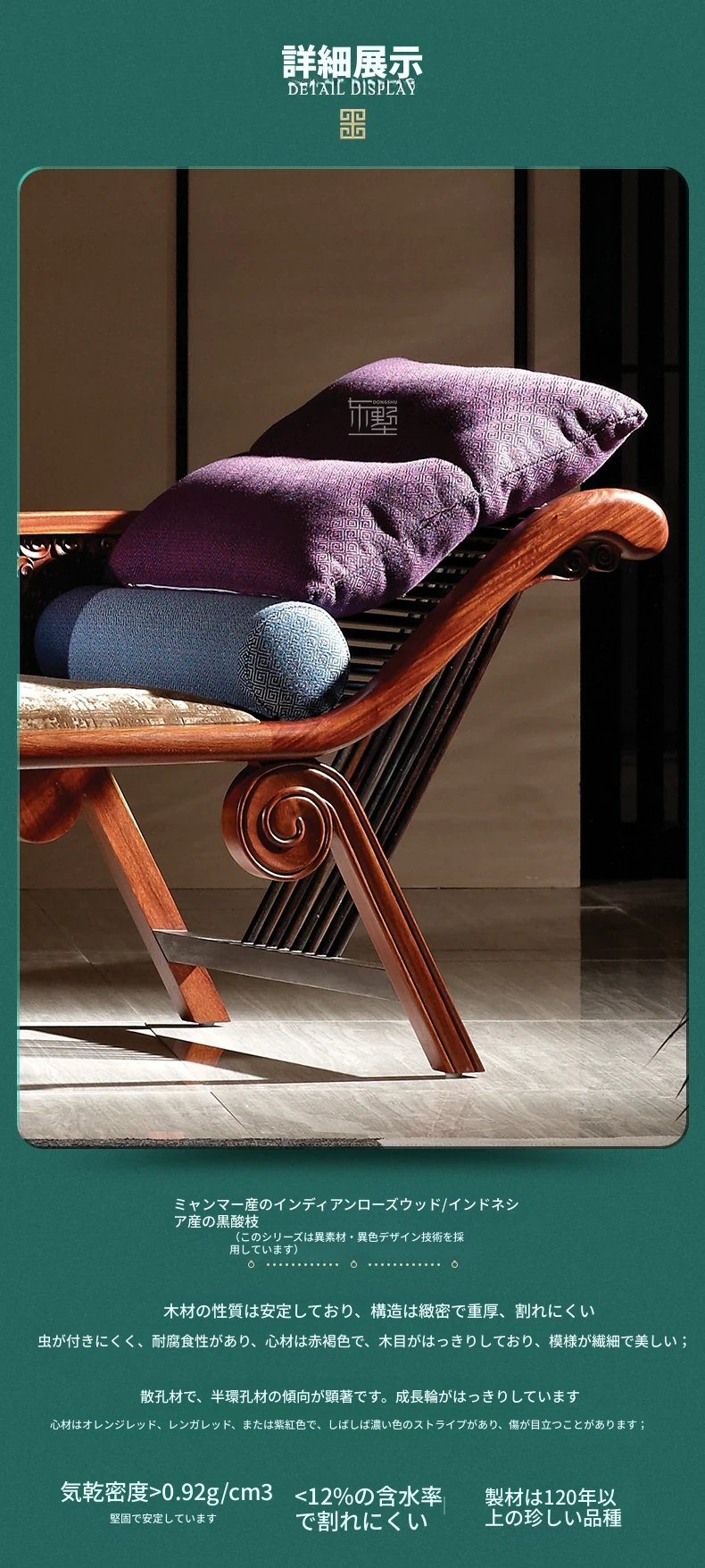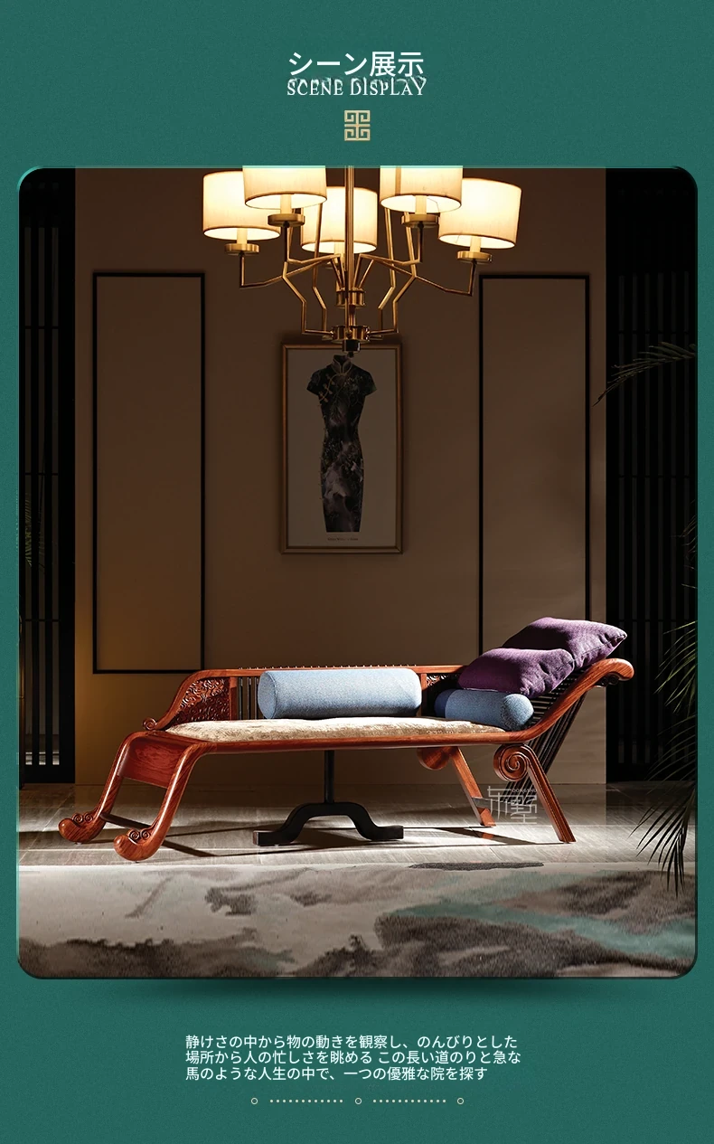 東墅の古典的な新中式スタイル、ミャンマー花梨木製の貴妃椅子。国際基準の紅木とインドネシア黒酸枝を使用した美しいデザイン。快適なリラックスタイムを提供します。高級感溢れる一品をぜひお試しください!