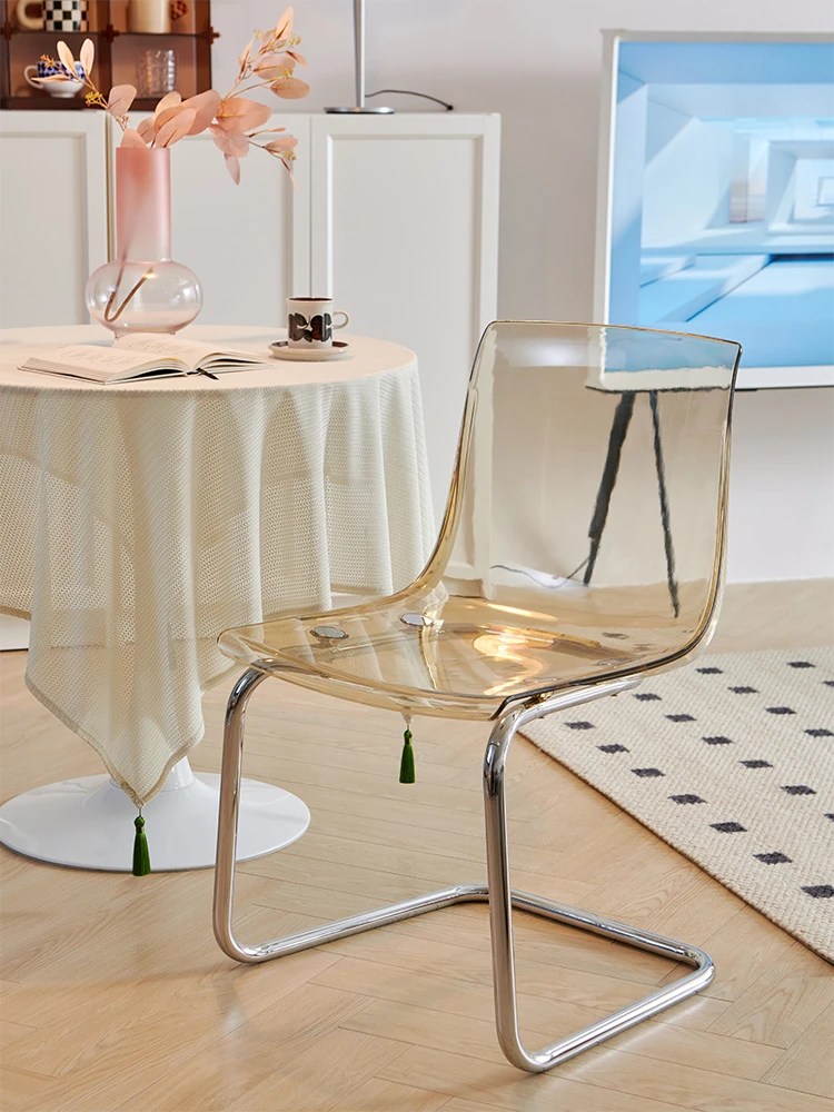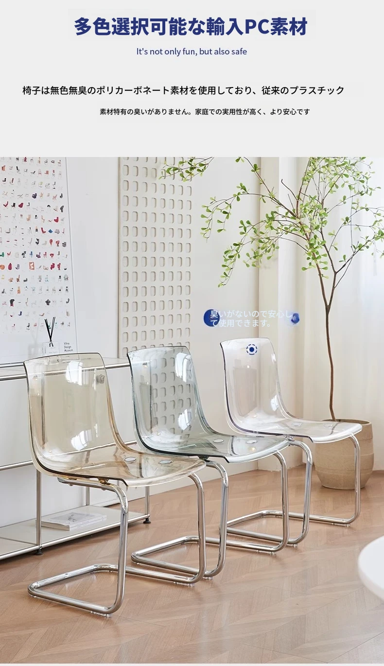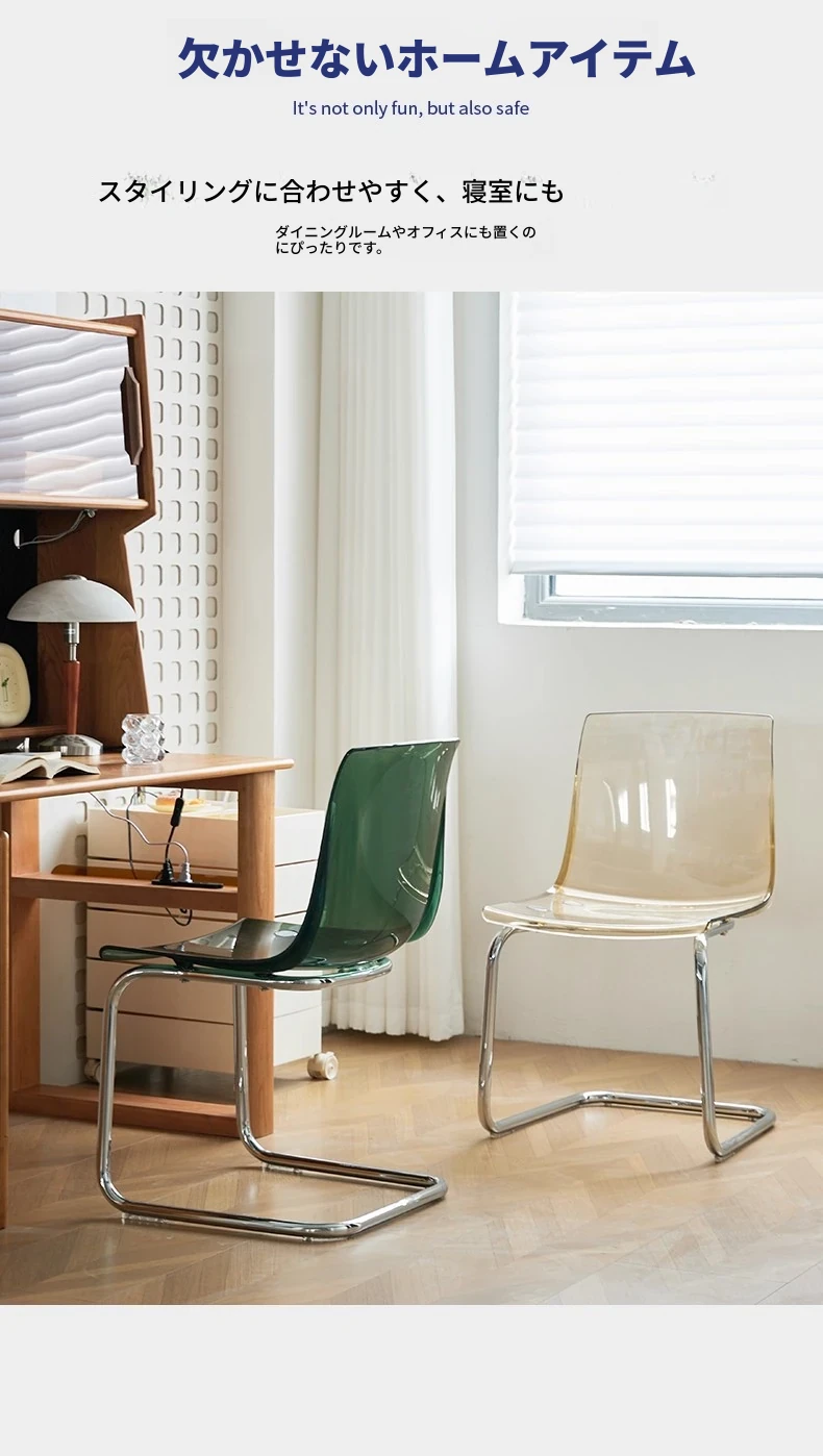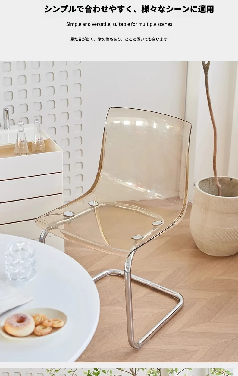 アクリル透明チェア - ラグジュアリーな高級感、快適な背もたれ付き、家庭用に最適なプラスチック製ダイニングチェア。長時間座っても疲れにくい、リビングルームやダイニングにぴったりのスタイリッシュな一品!