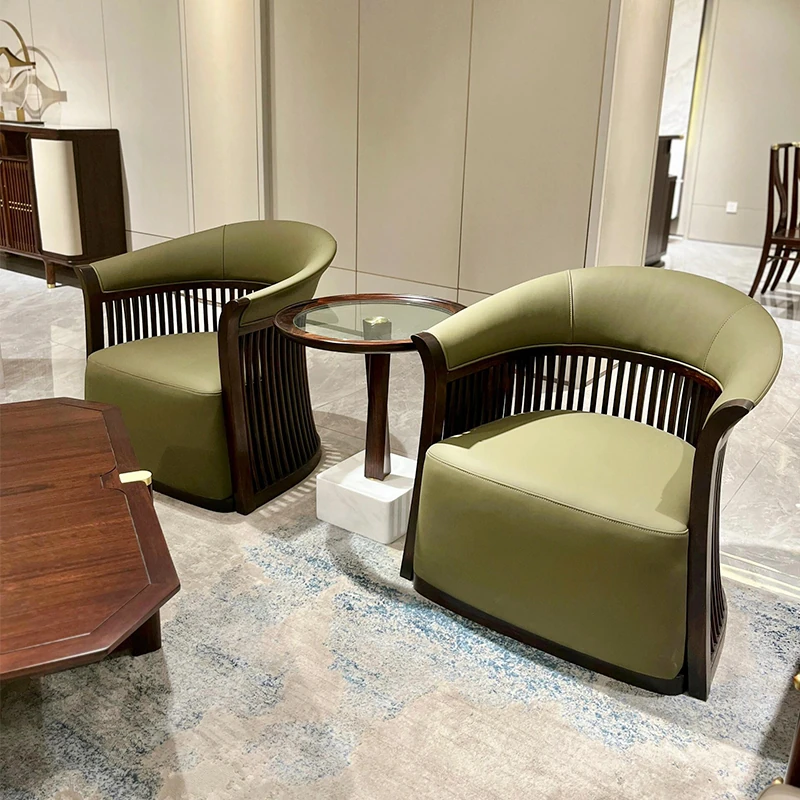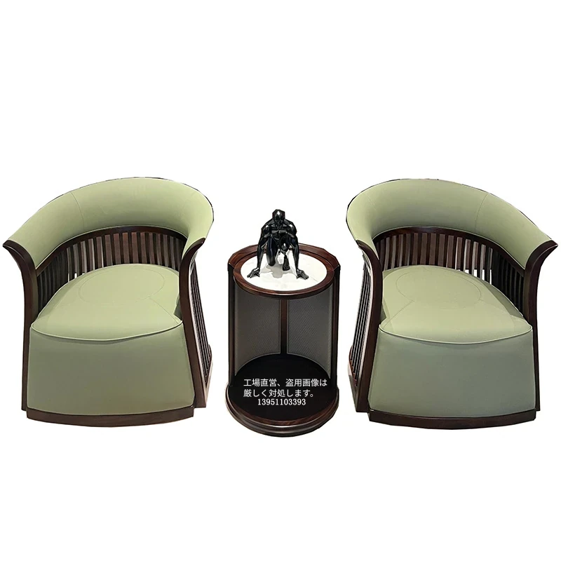 新中式ウッドビーチクッションソファチェア3点セット - ホテルやクラブに最適なシングルレセプションチェア、リビングやバルコニーにぴったりのスタイリッシュなデザイン!