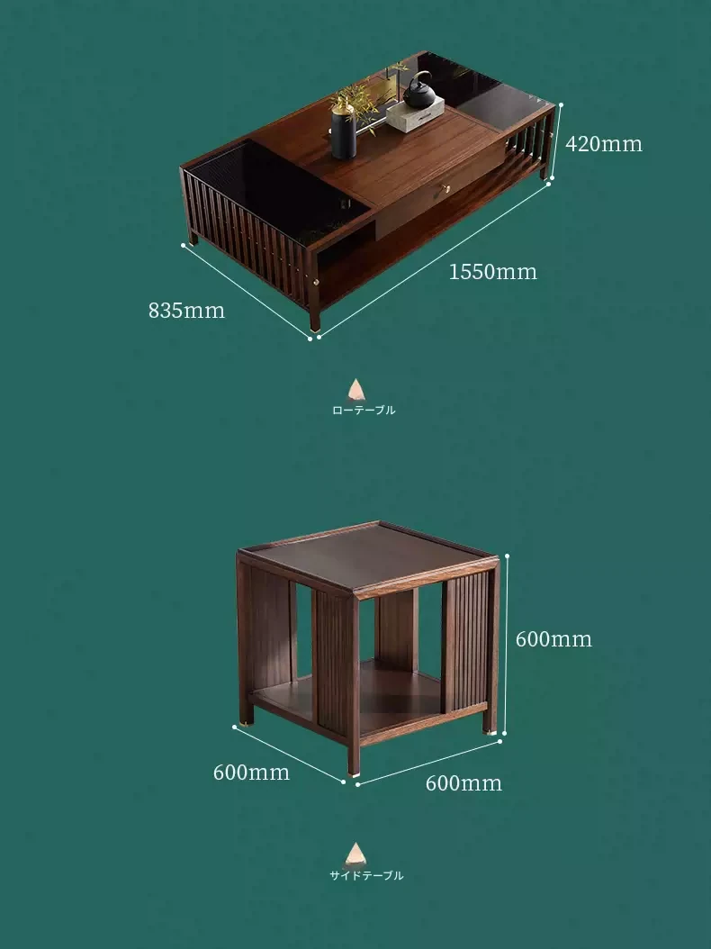 ラグジュアリー新中式/エボニーウッド 無垢材スクエアテーブル*2
