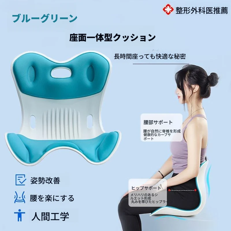 ドイツのハイテク【腰サポートチェア ブルーグリーン】ベーシックモデル 耐荷重140kg