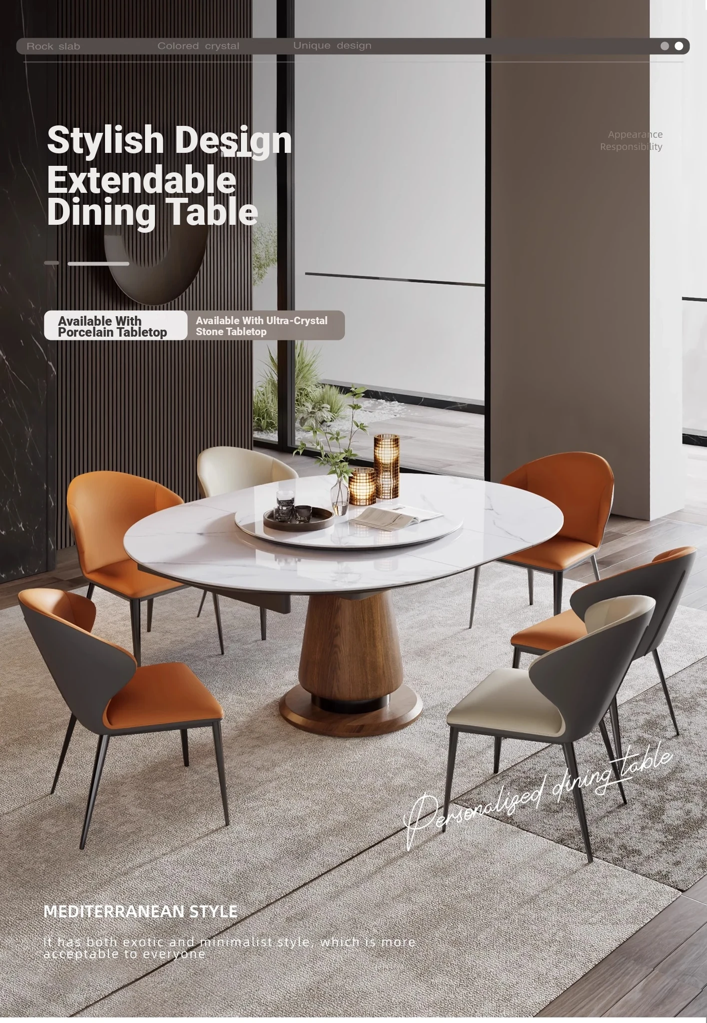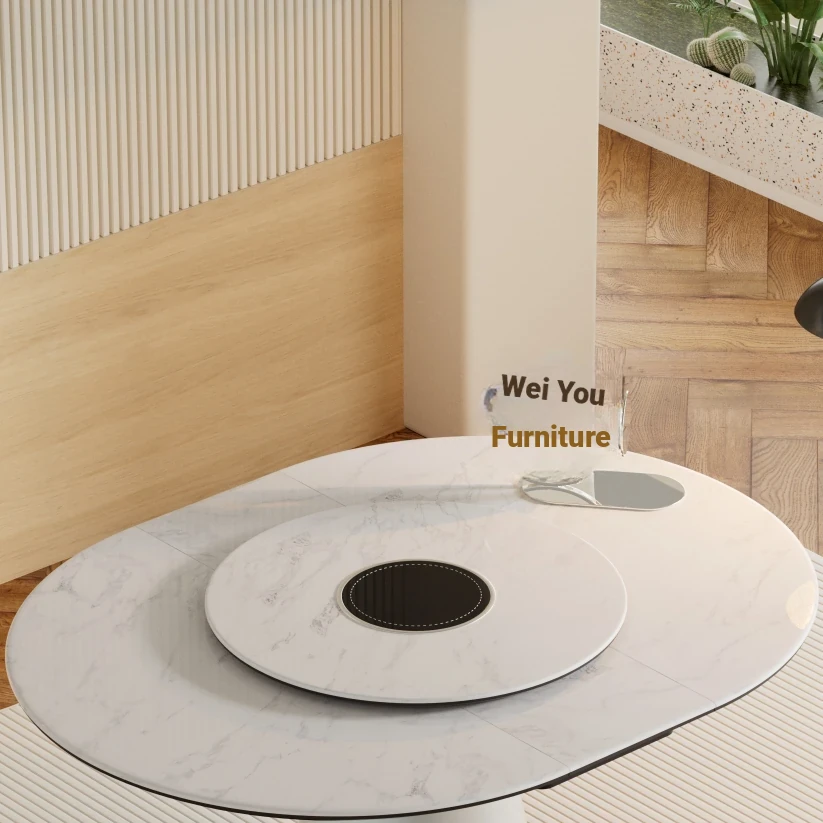 Expandable Folding Microcrystalline Stone Dining Table for Small Spaces - Versatile Solid Wood Round Table for Home Use, Perfect for Saving Space and Enhancing Your Dining Experience!