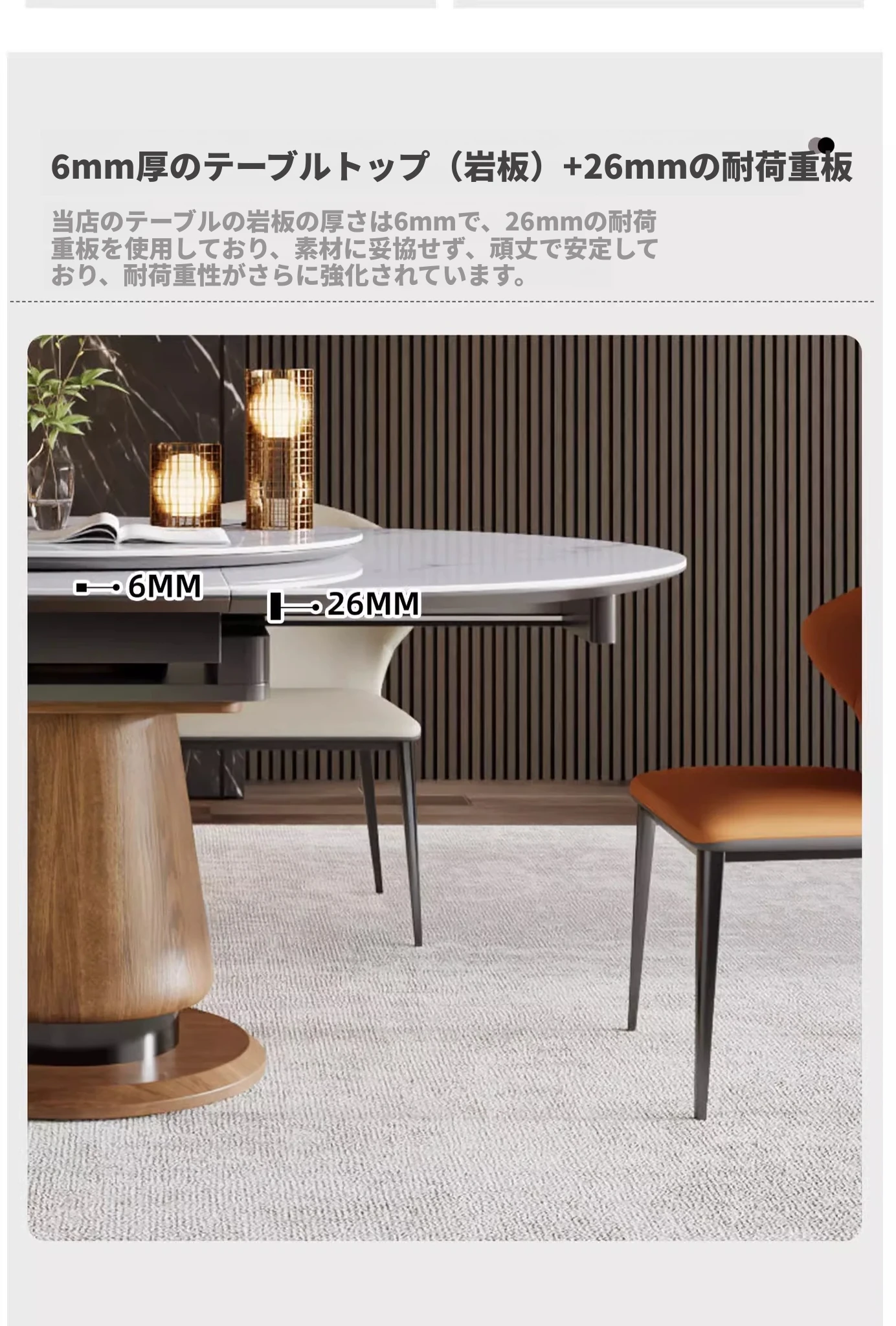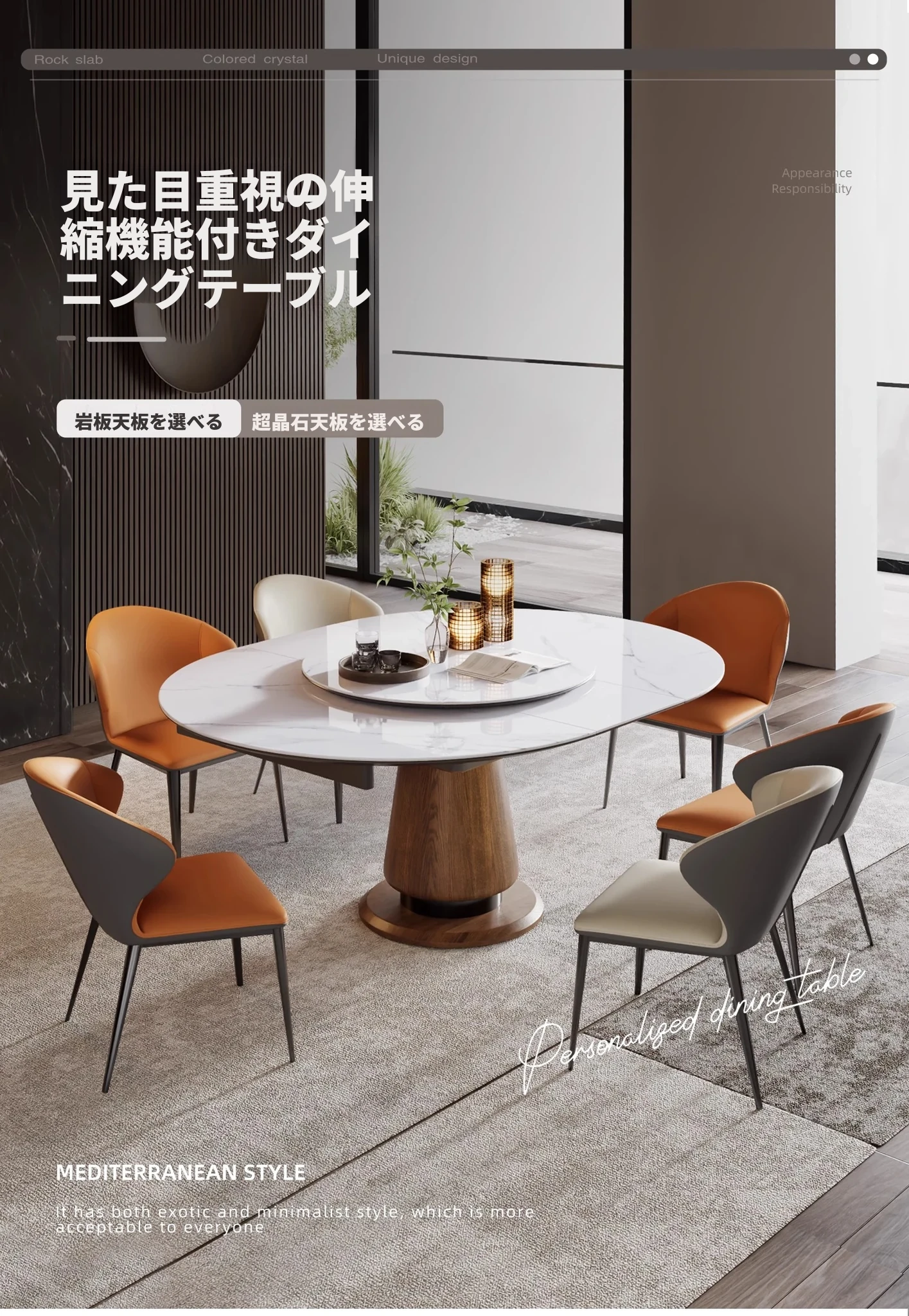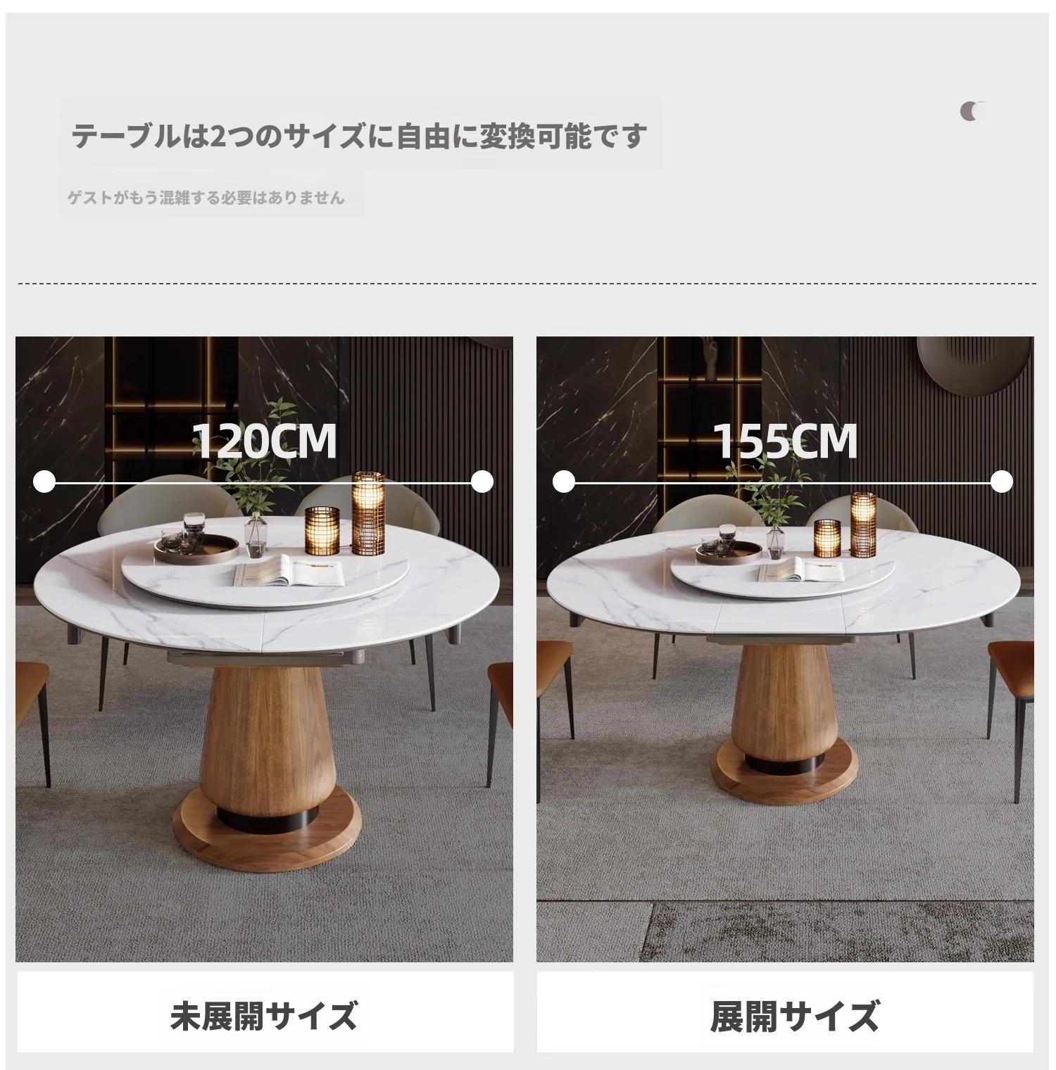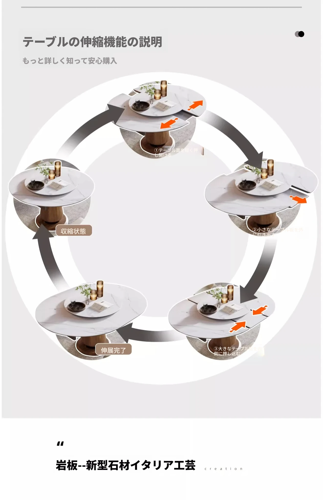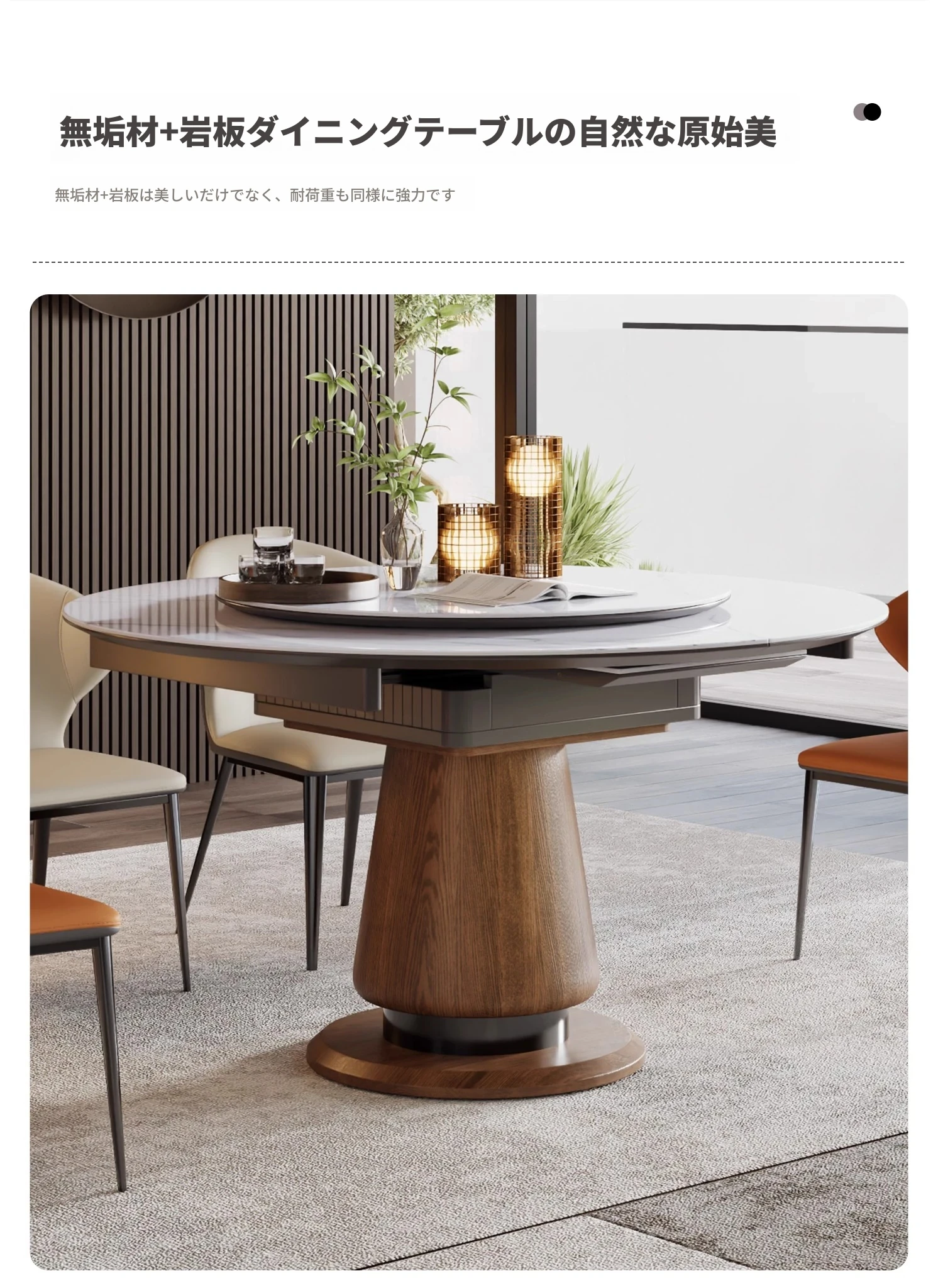 伸縮可能な岩板ダイニングテーブル - 家庭用・折りたたみ式・マイクロクリスタルストーン製・小型スペースに最適・多機能・省スペースデザインの丸テーブルで、食事をより楽しく!