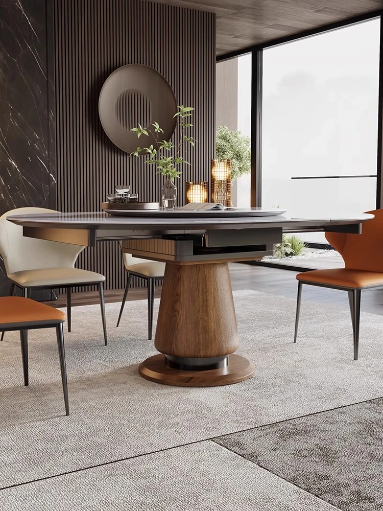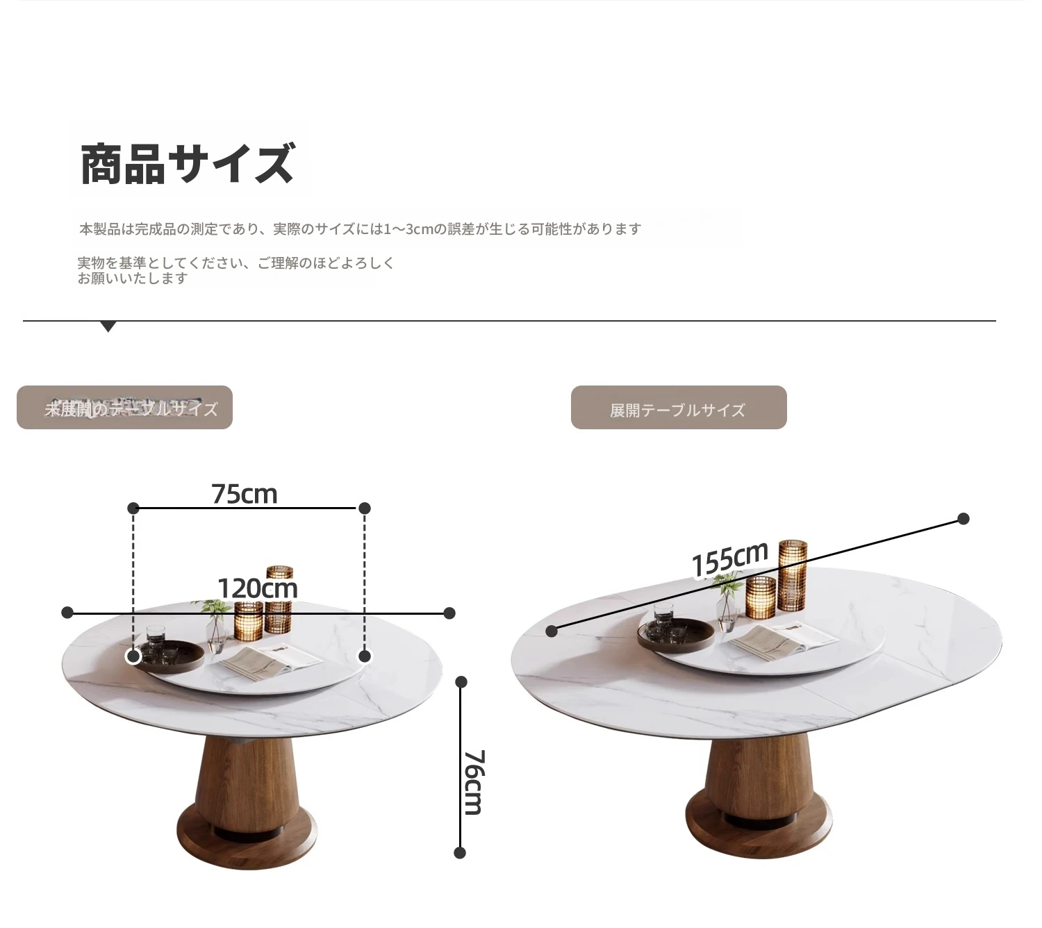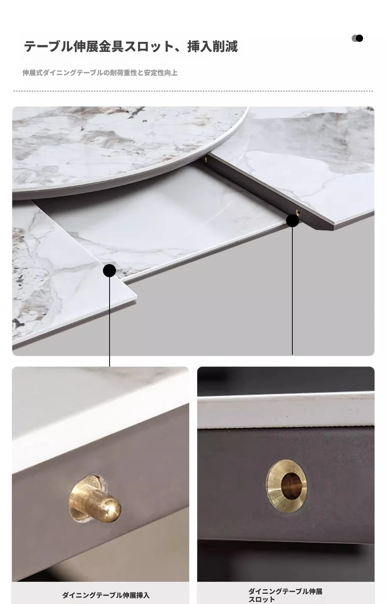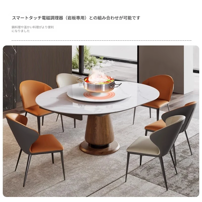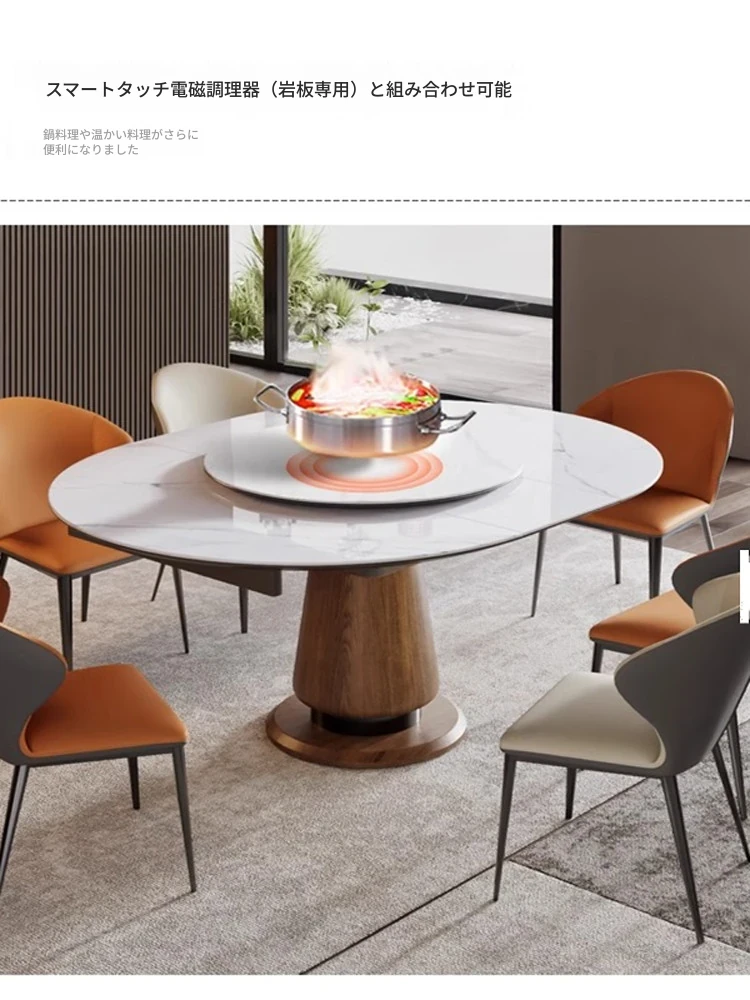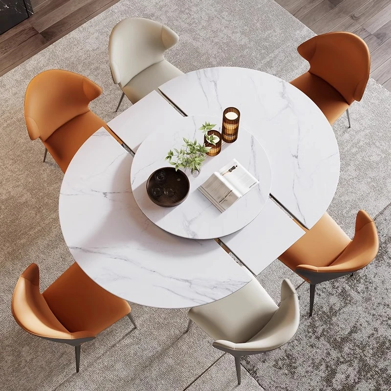 伸縮可能な岩板ダイニングテーブル - 家庭用・折りたたみ式・マイクロクリスタルストーン製・小型スペースに最適・多機能・省スペースデザインの丸テーブルで、食事をより楽しく!