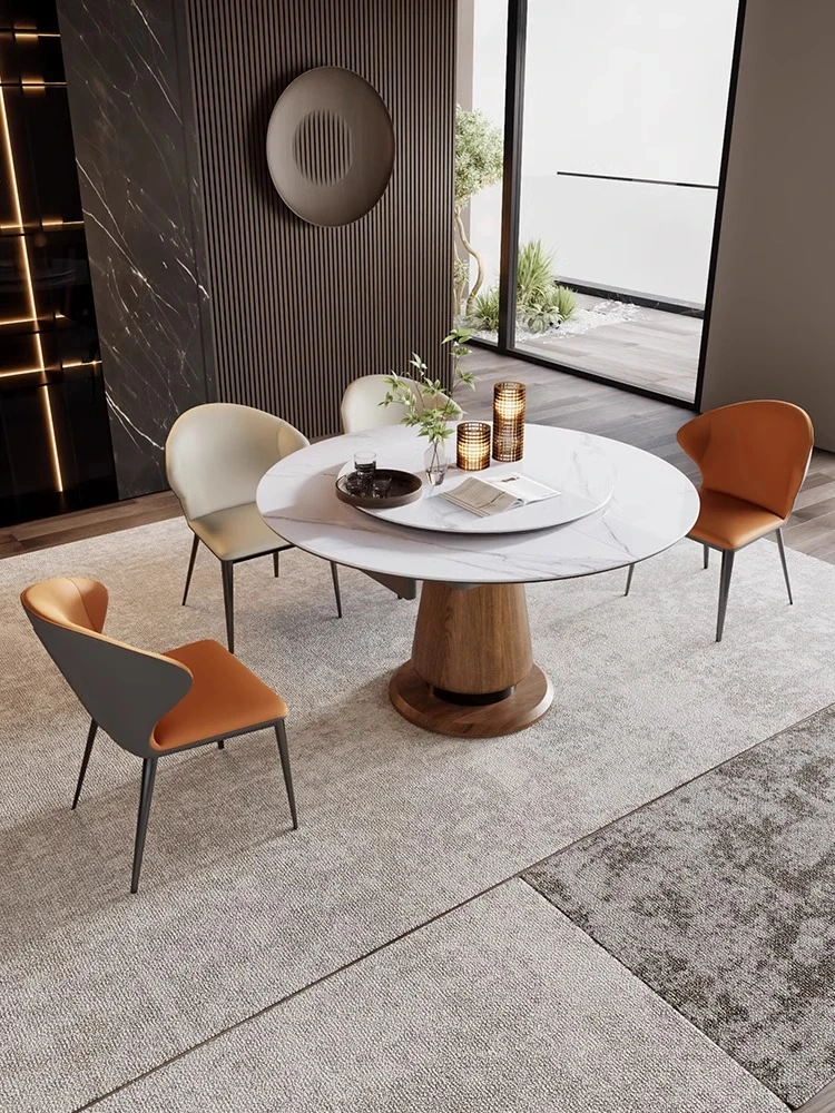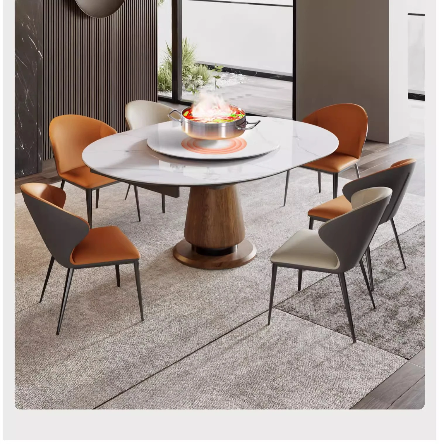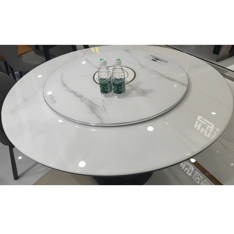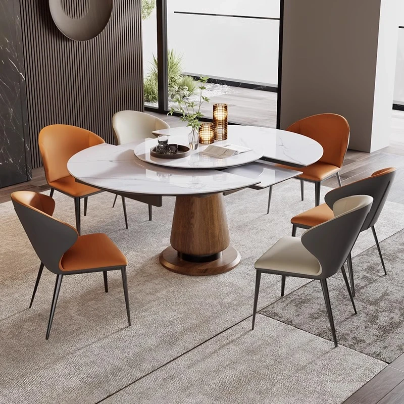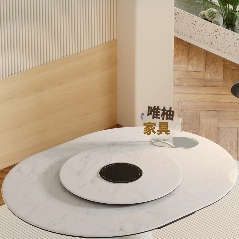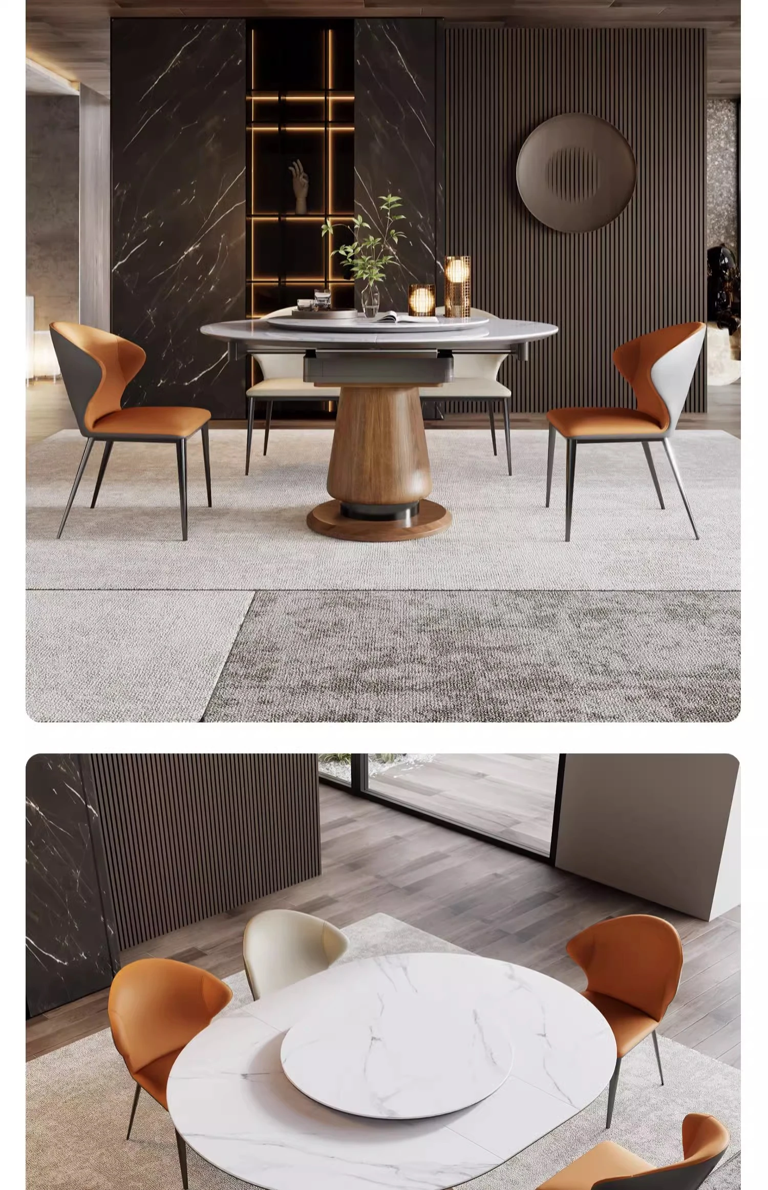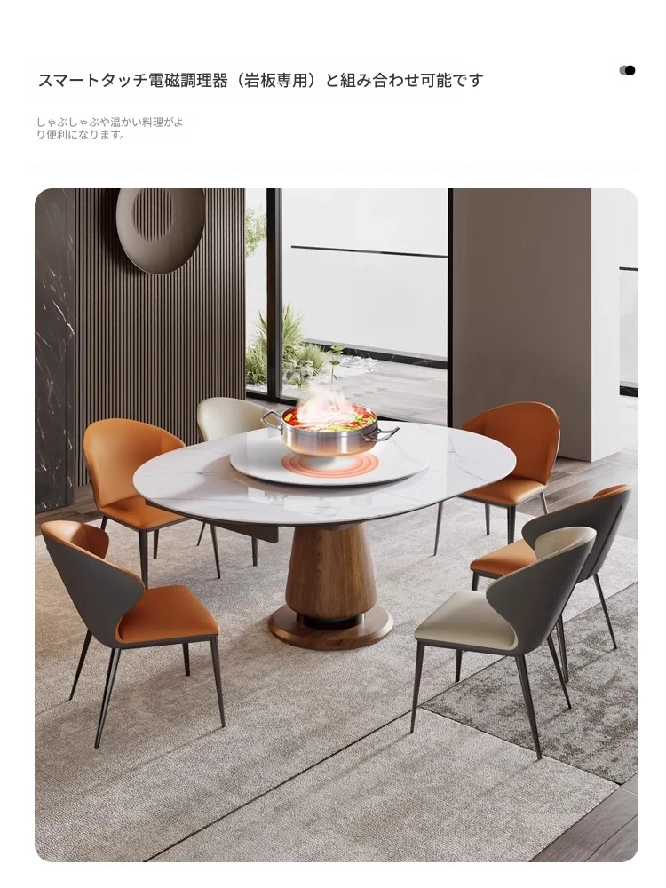 伸縮可能な岩板ダイニングテーブル - 家庭用・折りたたみ式・マイクロクリスタルストーン製・小型スペースに最適・多機能・省スペースデザインの丸テーブルで、食事をより楽しく!
