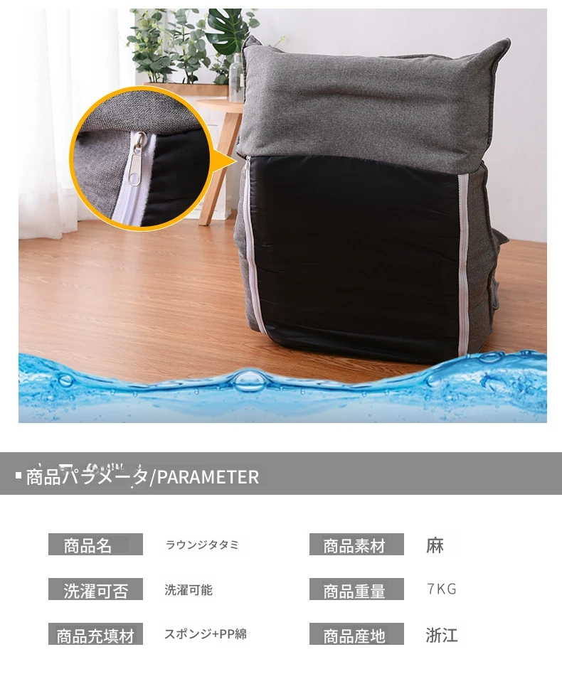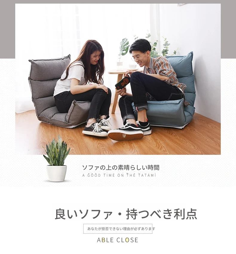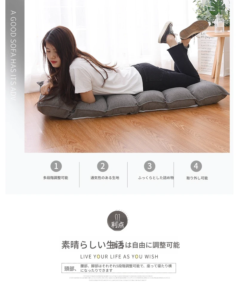 日本式リラックスソファ!脚なしデザインで快適な横たわり、背もたれ付きの休憩チェア。畳やバルコニーにぴったりな座椅子で、窓辺のくつろぎスペースを演出。あなたの癒しの時間をサポートします!