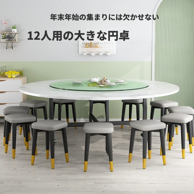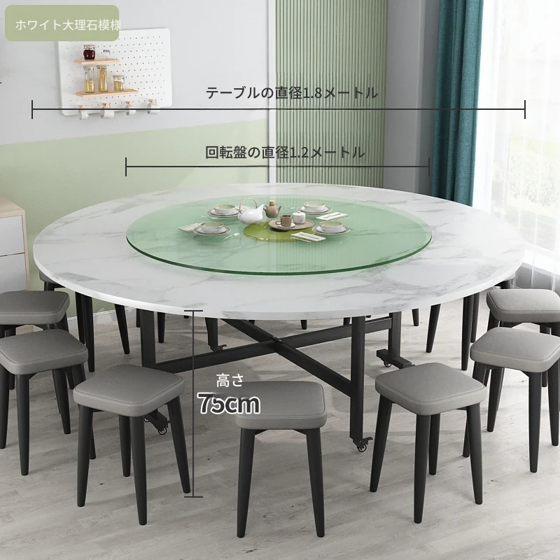 1.8メートル白大理石+1.2メートル強化ガラス回転台+12角スツール