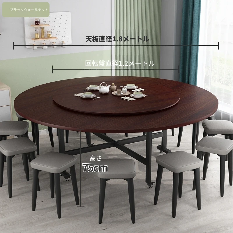 1.8メートル黒ナッツ+1.2メートルテクスチャー回転台+12角スツール